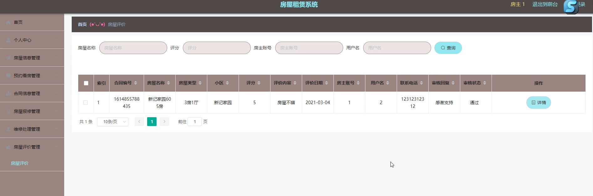 With the continuous progress of the society and the rapid development of science and technology, the Internet technology is increasingly favored by people. The lifestyle of network computer has gradually been deeply rooted in the people and become an indispensable part of the daily life of the majority of users. With its advantages of convenience, high speed, high efficiency and low cost, the Internet has brought about unprecedented changes to all walks of life. Therefore, it is particularly important to develop a housing rental transaction system that meets specific needs.