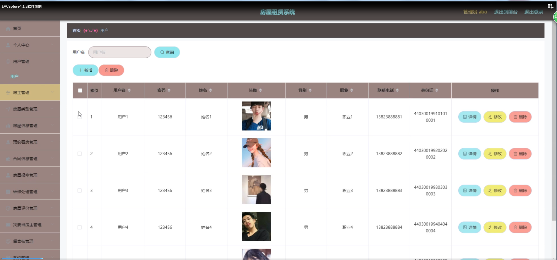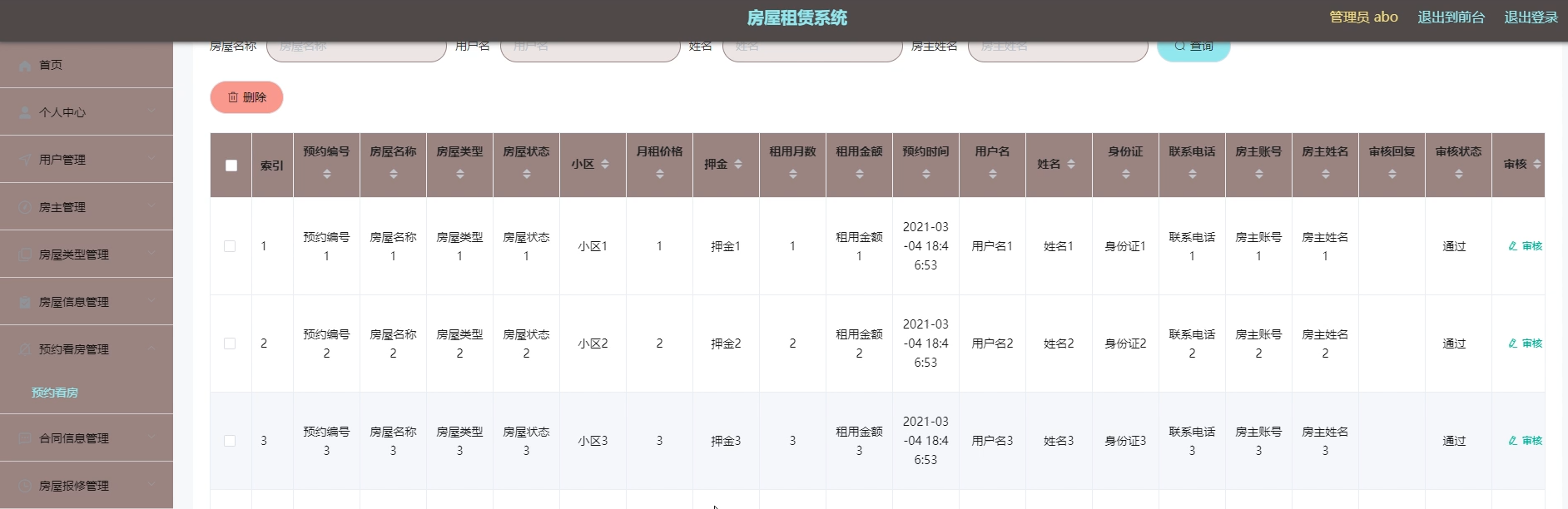 Key words: house rental; transaction system; Springboot; Vue; MySQL