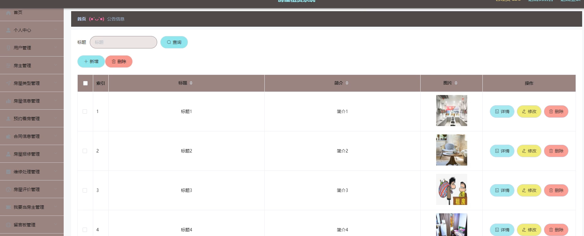 本文从用户的实际功能需求出发,设计并实现了一套房屋租赁交易系统。该系统主要包括个人中心、房屋类型管理、房屋信息管理、预约看房管理、合同信息管理、房屋报修管理、房屋评价管理、房东入驻管理(我要当房东)、留言板管理以及系统管理等多个功能模块。经过深入细致的研究、精心的准备和规划,系统最终成功通过测试,并可以正常投入使用。在开发过程中,我们充分结合了房屋租赁系统的实际需求,对功能进行了不断调整和优化,同时探讨了使用Springboot+Vue技术栈开发房屋租赁系统的实践应用。