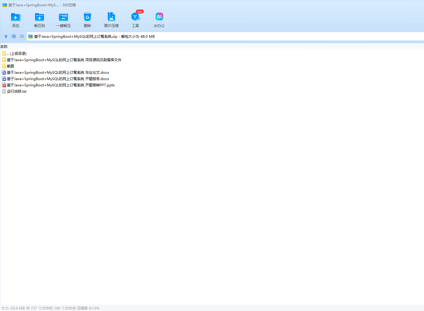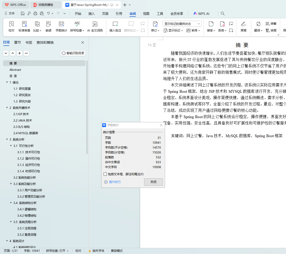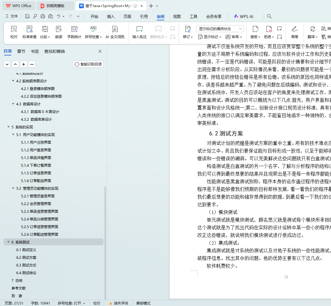 本基于Spring Boot的网上订餐系统运行稳定,操作便捷,界面友好,是一个功能完备、实用性强、安全性高,且具备良好可扩展性和可维护性的订餐服务平台。