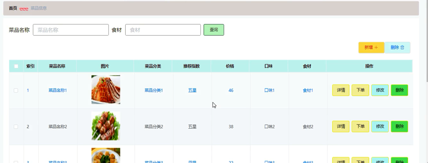 5.2.3菜品信息管理界面