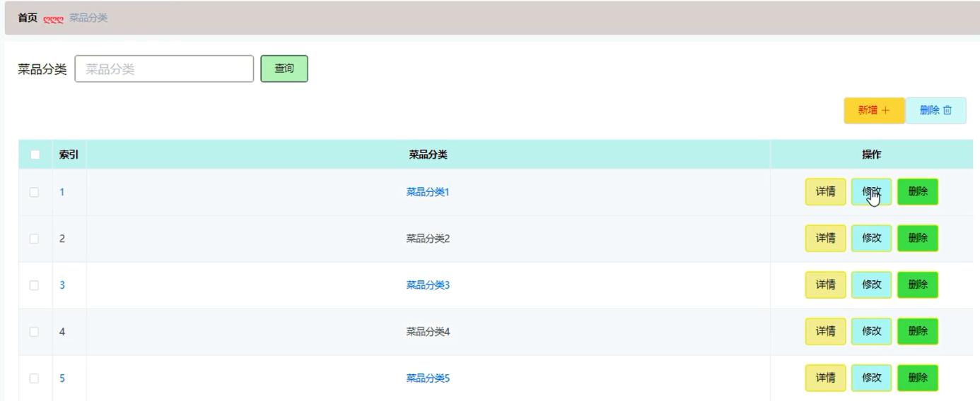 5.2.4菜品分类管理界面