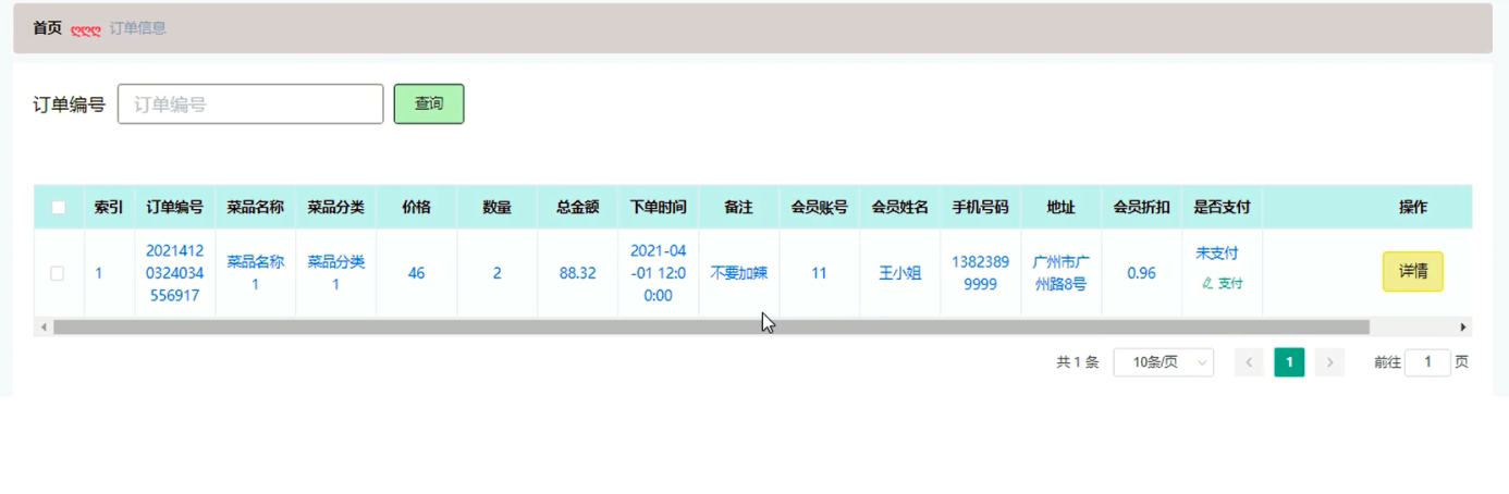 5.2.5订单信息管理界面