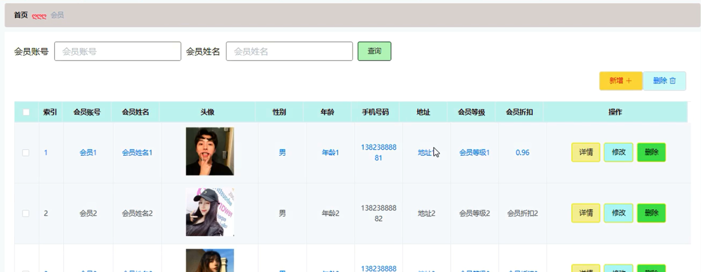 5.2.2会员管理界面