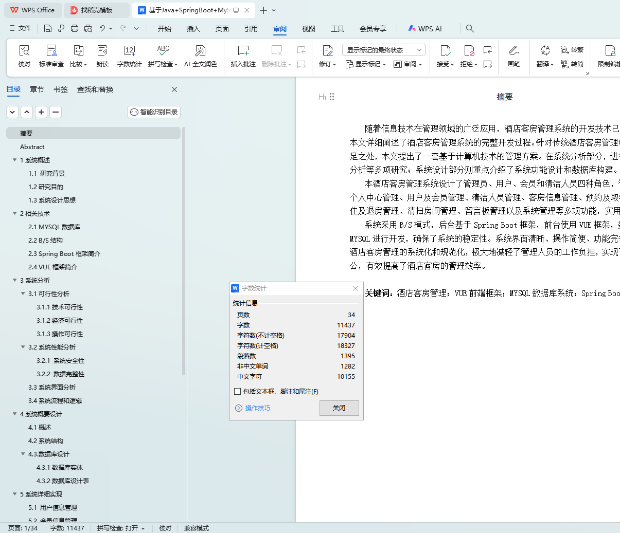 关键词:酒店客房管理;VUE前端框架;MYSQL数据库系统;Spring Boot后端框架