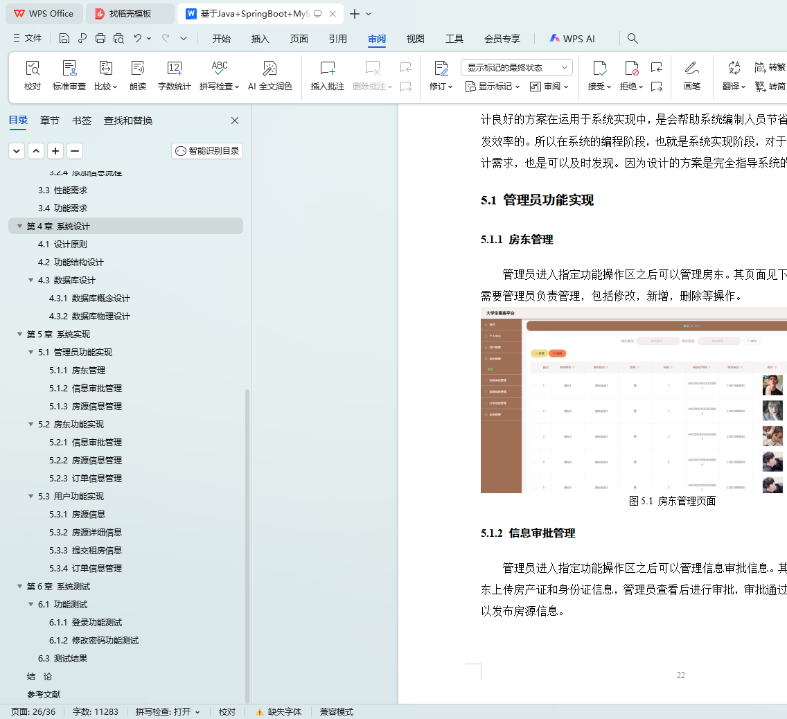 This platform is based on the SpringBoot framework, developed in Java language, and uses the Mysql database to create data tables to store system data. The platform provides information display and corresponding service functions. The administrator is responsible for the management of the landlord and the user, reviewing the information approval request submitted by the landlord, and the housing information released by the landlord. Landlords can submit information for approval, release housing resources, and review users' rental orders. Users can collect their favorite house, rent the house, and complete the operation of paying the order.