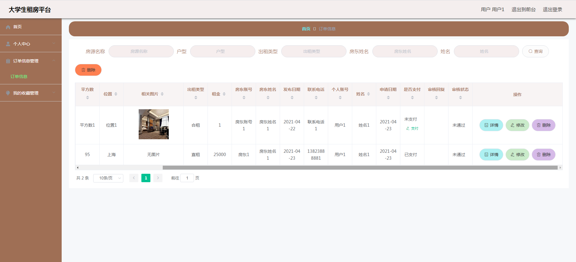 To sum up, the college student rental platform has realized the centralized management of information, and has significant advantages such as strong confidentiality, high efficiency, large storage space and low cost. It effectively reduces the cost of information management and realizes the computerization of information management.