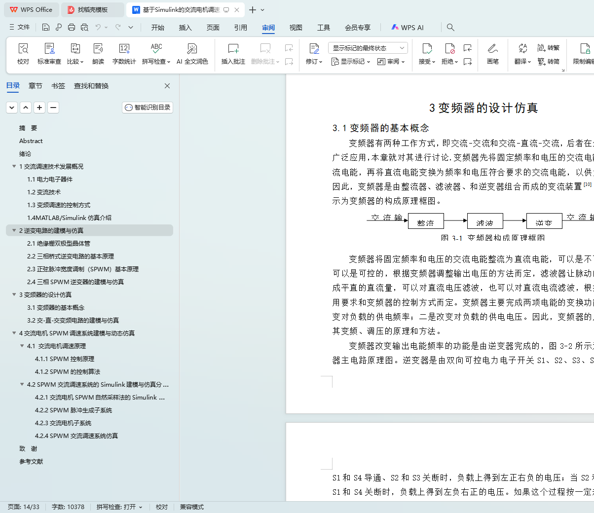 Key words: SPWM (sinusoidal pulse width modulation); AC motor speed regulation; Simulink simulation; magnetic chain equation; dynamic simulation