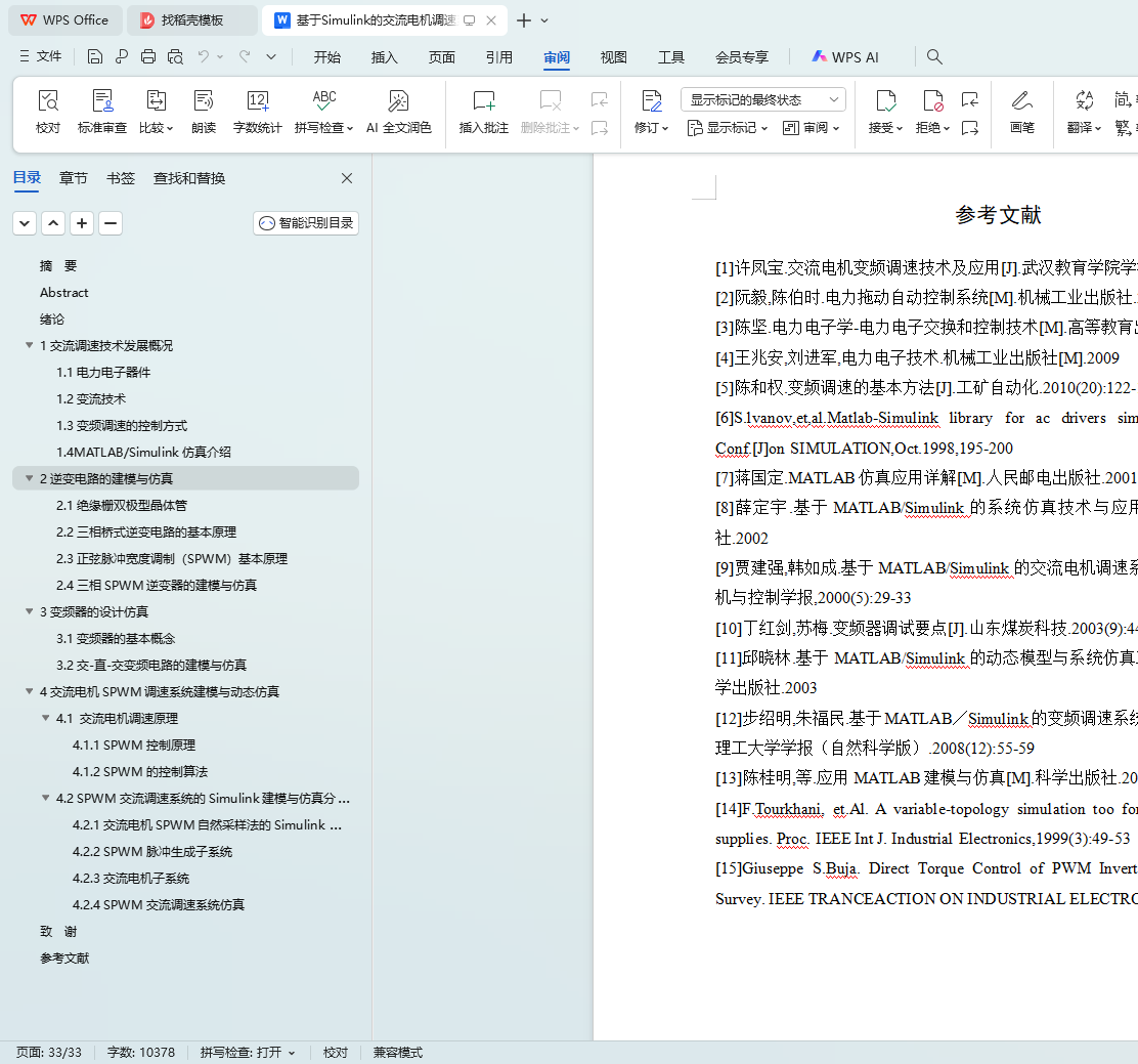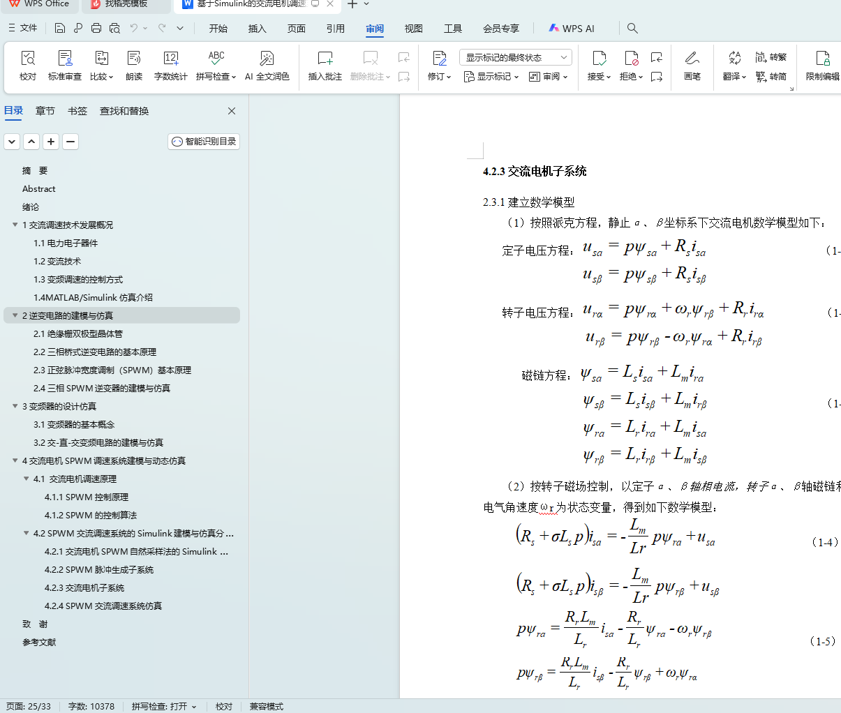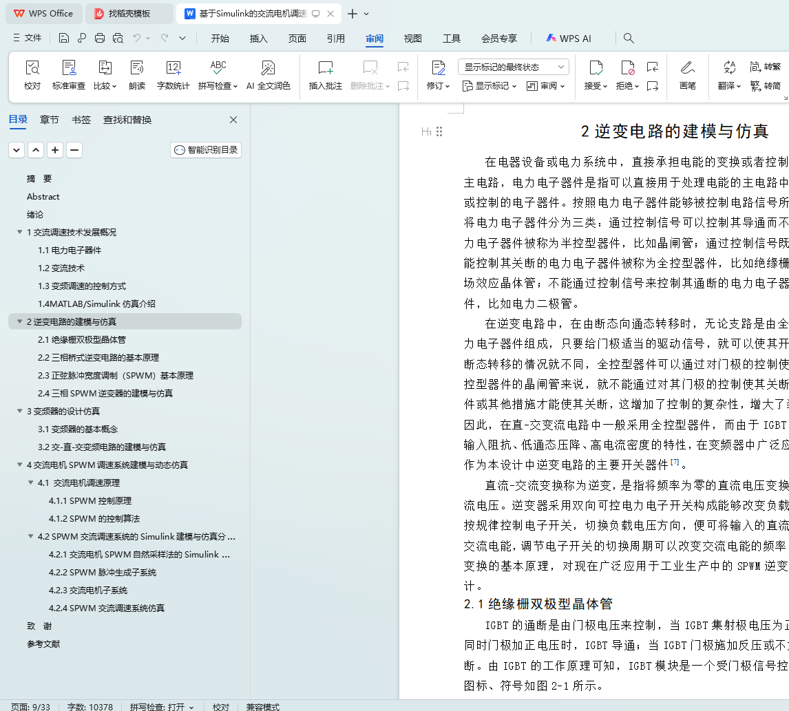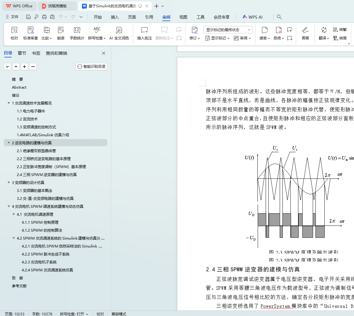 关键词:SPWM(正弦脉宽调制);交流电机调速;Simulink仿真;磁链方程;动态仿真