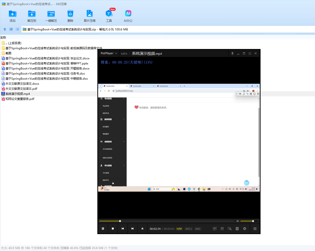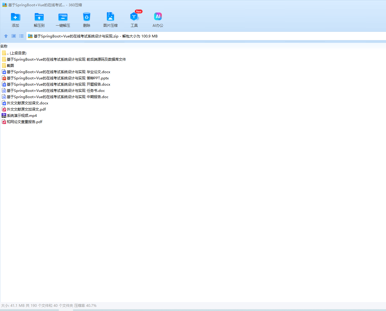 随着信息技术的飞速进步和互联网的广泛使用,传统的纸质考试方式正在逐渐向网络化、电子化方向转变。本文旨在利用SpringBoot构建一个功能完善、性能稳定、用户体验良好的在线考试系统,以提高教学的效率和质量。系统采用主流的B/S架构,后端使用SpringBoot进行开发,前端使用Vue构建用户交互界面,数据库选用MySQL实现数据持久化。系统能够处理各种类型的题目,如选择题、填空题和判断题等。此外,它还能自动完成阅卷工作并统计成绩。管理员可方便地管理题库、组织考试。