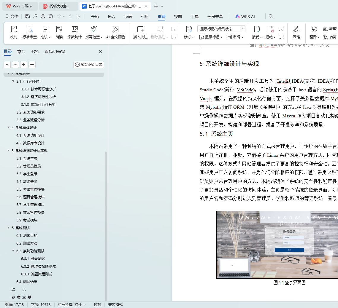 Key Words: online exams; SpringBoot framework; Front and rear separation; B/S architecture; Permission management