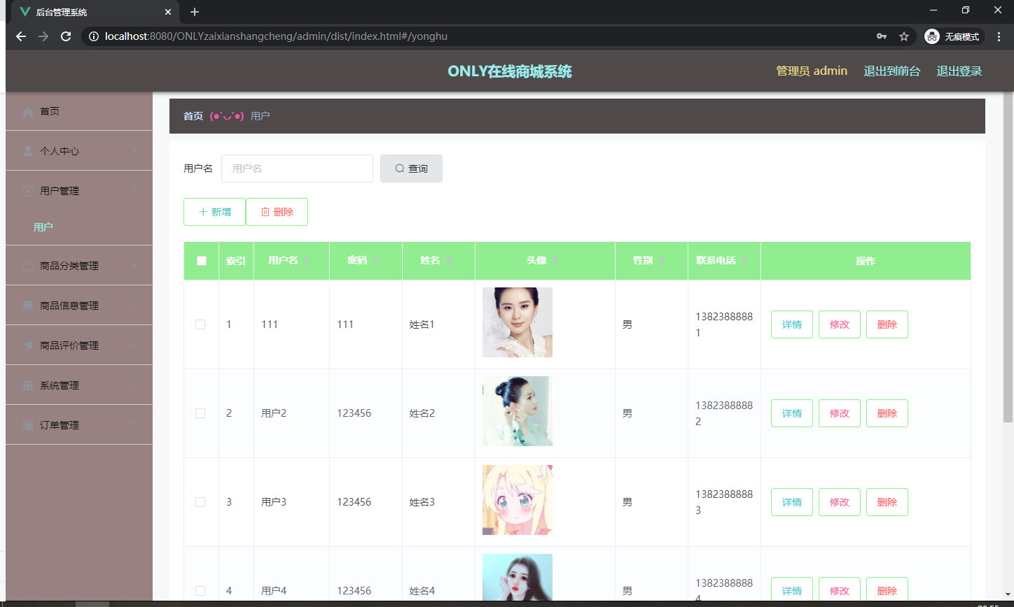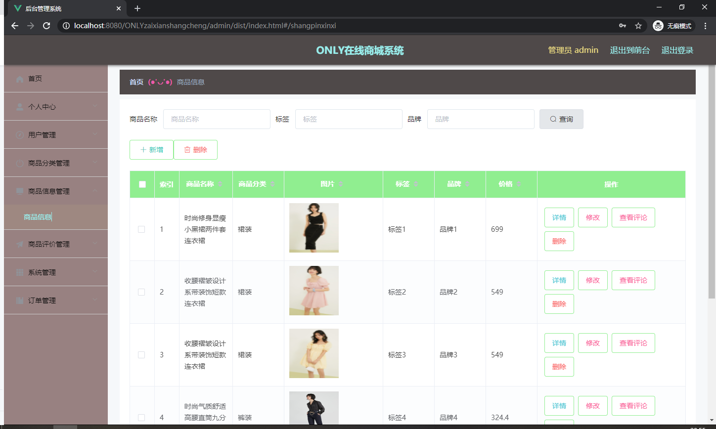 现代经济快节奏发展以及不断完善升级的信息化技术,让传统数据信息的管理升级为软件存储,归纳,集中处理数据信息的管理方式。本ONLY在线商城系统就是在这样的大环境下诞生,其可以帮助管理者在短时间内处理完毕庞大的数据信息,使用这种软件工具可以帮助管理人员提高事务处理效率,达到事半功倍的效果。此ONLY在线商城系统利用当下成熟完善的Springboot框架,使用跨平台的可开发大型商业网站的Java语言,以及最受欢迎的RDBMS应用软件之一的Mysql数据库进行程序开发.ONLY在线商城系统的开发根据操作人员需要设计的界面简洁美观,在功能模块布局上跟同类型网站保持一致,程序在实现基本要求功能时,也为数据信息面临的安全问题提供了一些实用的解决方案。可以说该程序在帮助管理者高效率地处理工作事务的同时,也实现了数据信息的整体化,规范化与自动化。