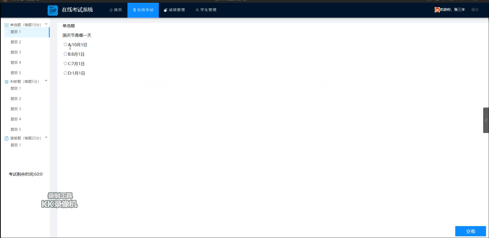 4.1.3在线考试界面