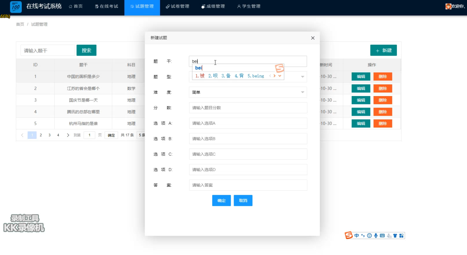4.2.1 新建试题界面