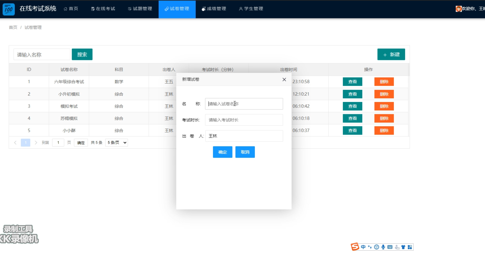 4.2.2 新建试卷管理界面