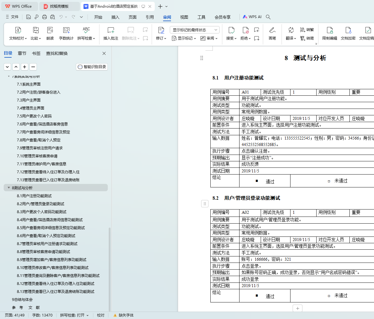 2.本文的开发过程遵守软件工程的理论,详细地介绍了中小型酒店预定系统的开发背景、研究现状、系统业务需求、功能需求、非功能需求、系统架构设计、数据库设计、安全设计,给出了核心功能模块的界面实现和代码实现过程,并对系统做了较为详细的功能测试和性能测试,保证了系统的正确性。