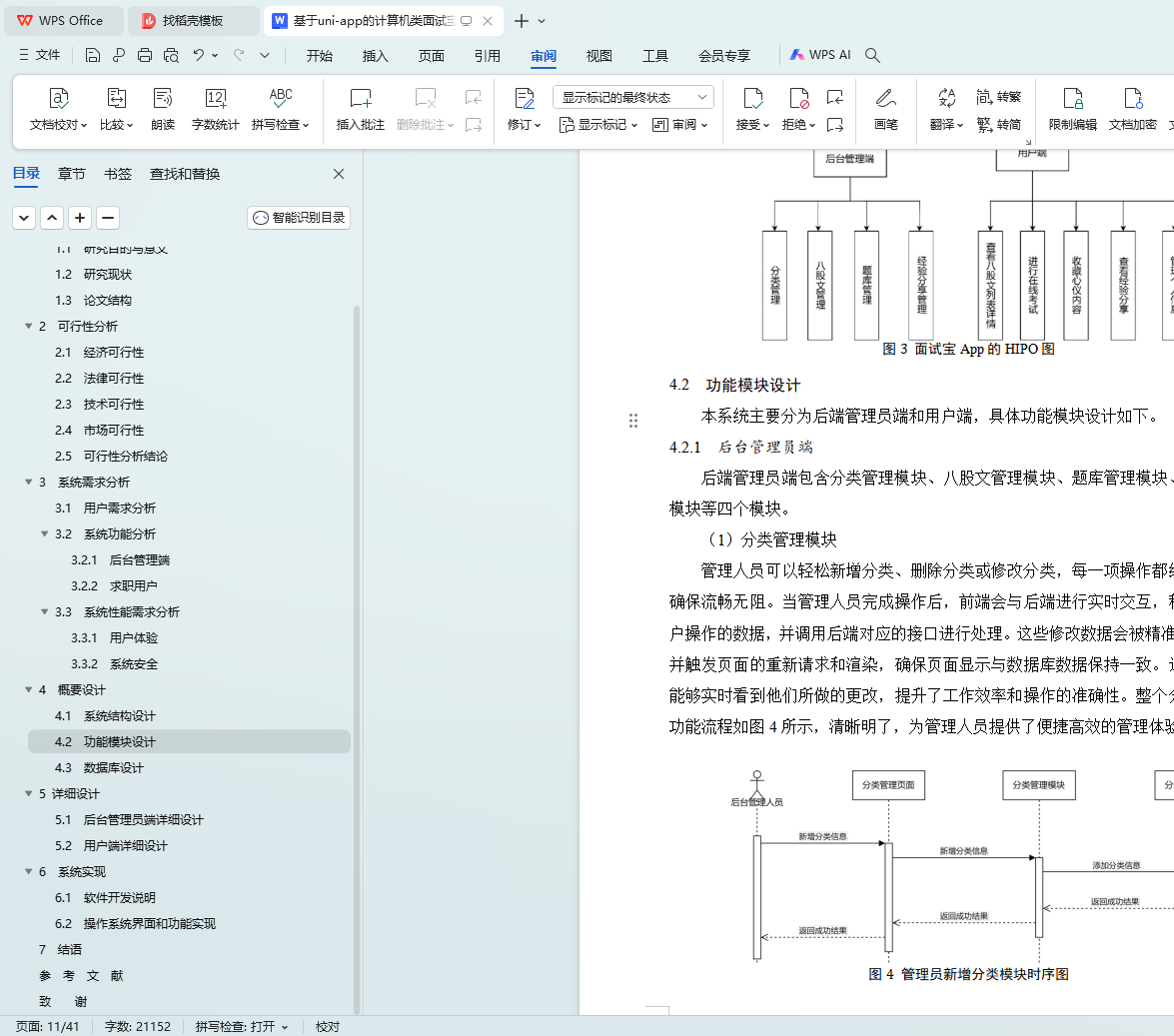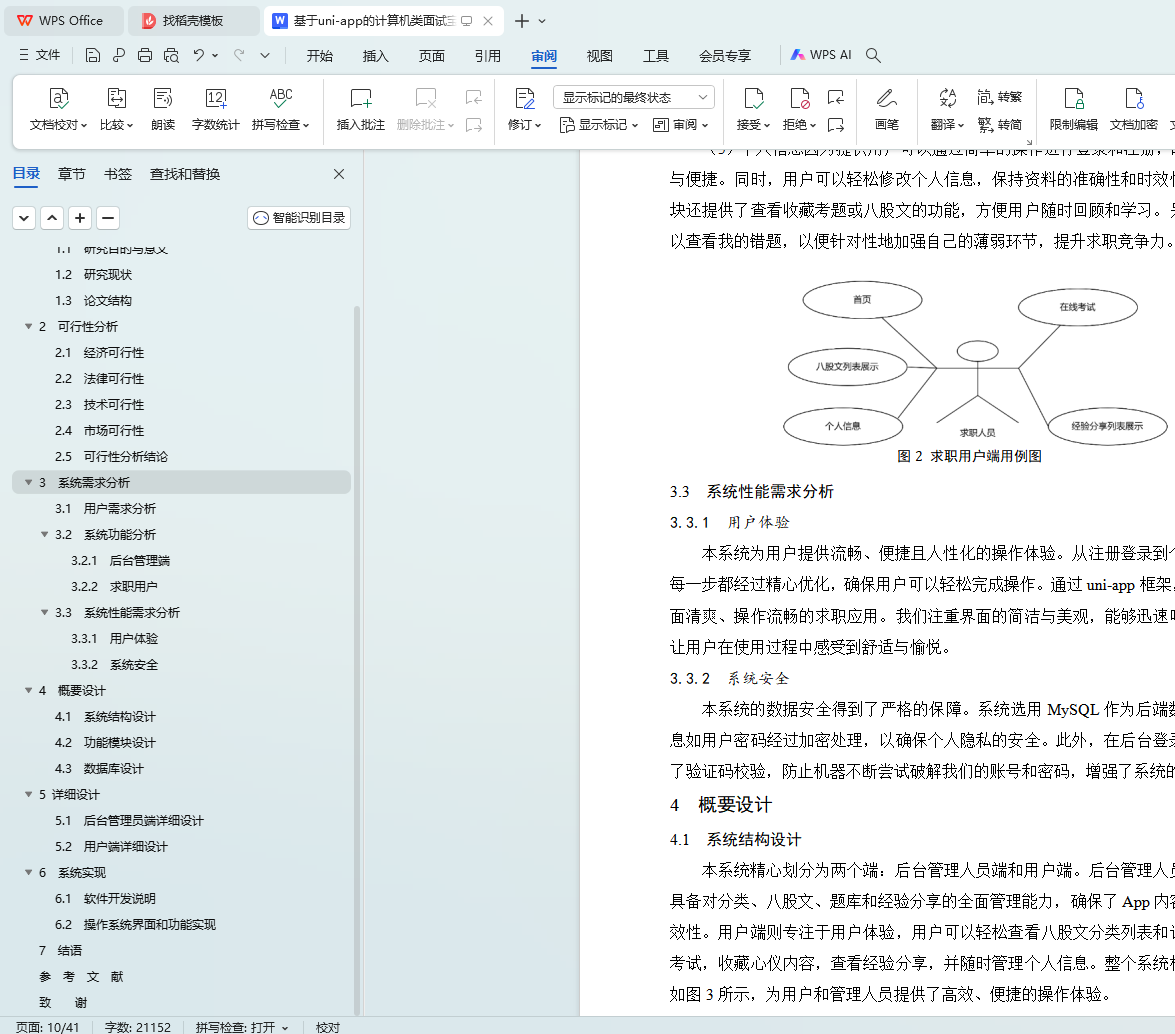 笔试和面试是大学生就业的关键环节,是雇主评估申请者能力和适应性等能力的考察。尽管网上有许多共享的笔试题和面试经验,但信息分散,缺乏整合,使得大学生需花费大量时间搜集资料。本文开发了一款名为“面试宝”的App软件,该软件采用Spring Boot框架开发进行后端开发,并结合Vue.js和uni-app框架进行前端开发。本文首先采用UML统一建模语言对系统业务流程进行了详细的需求分析、概要设计与详细设计。系统提供了查看八股文列表,查看八股文详情,收藏和查看收藏,在线考试等功能,为广大学生提供一个全面且系统的学习资源,集合了丰富的笔试题库和面试经验分享。通过本系统,学生可以随时随地进行学习,深入了解各类题型和面试技巧,学生可以在真实的考试环境中进行模拟练习,从而更好地适应实际面试的节奏和压力。