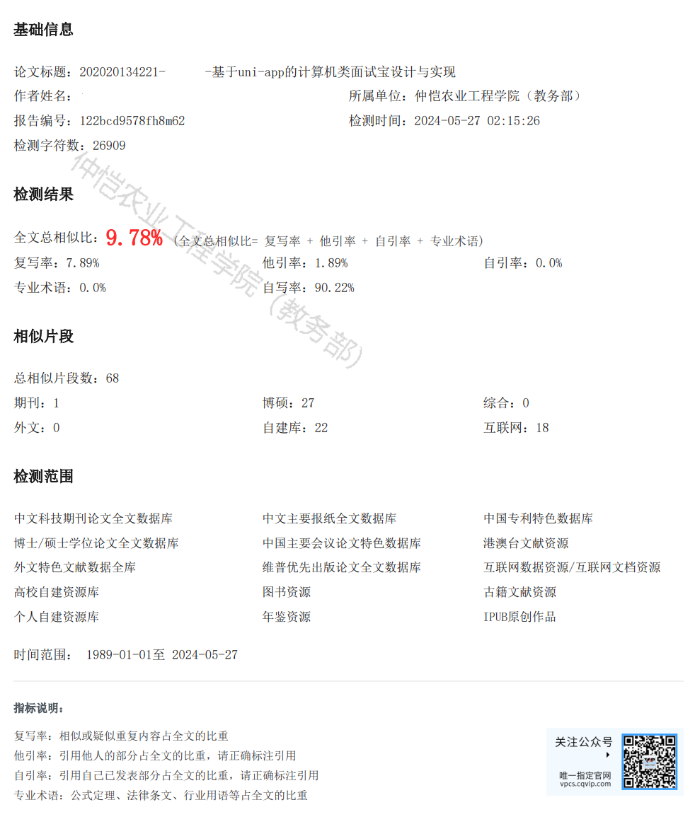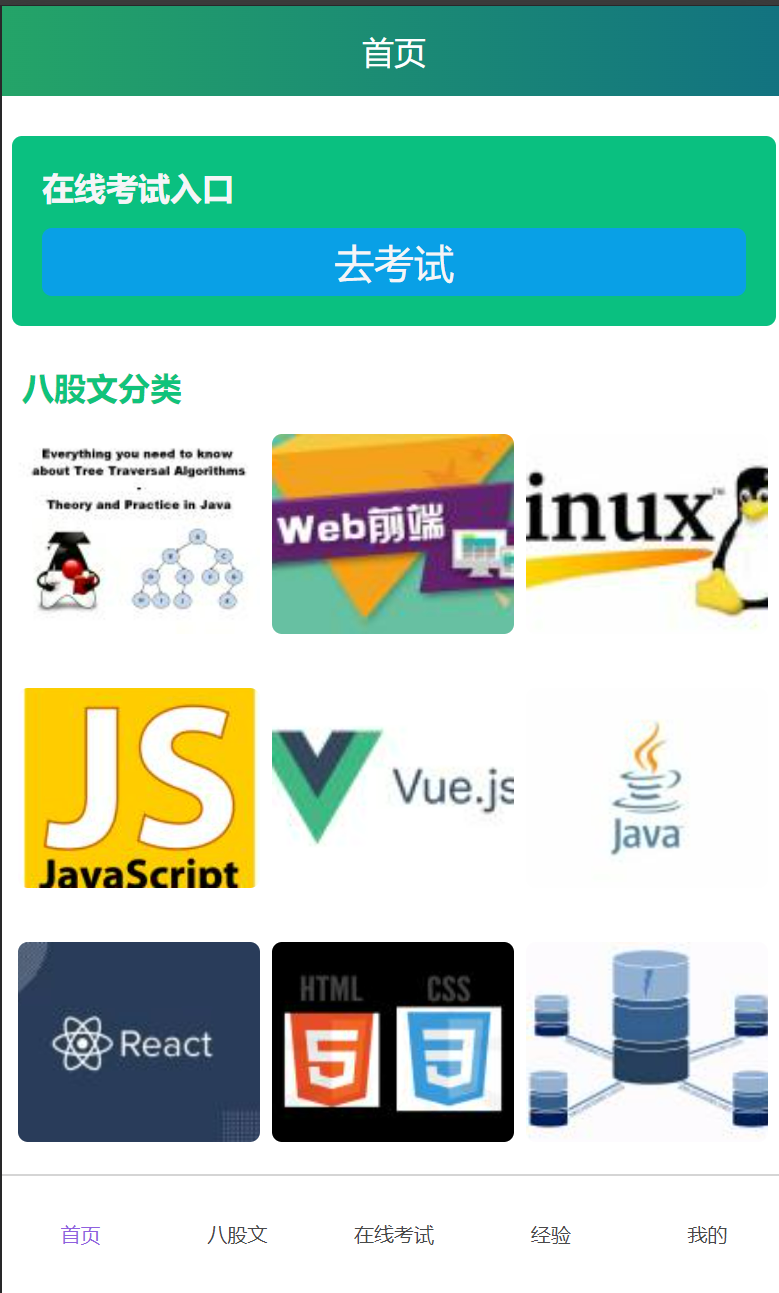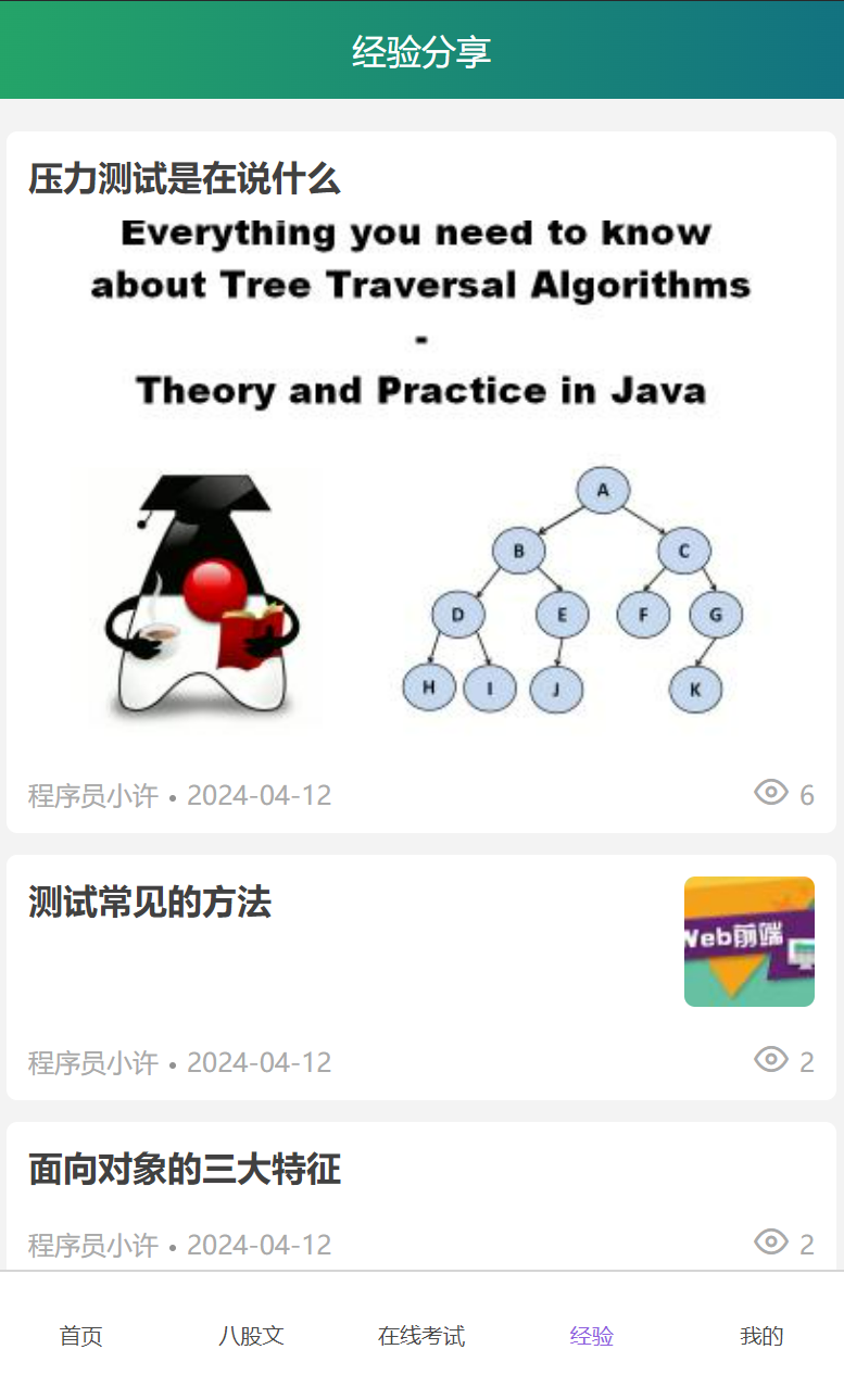 Key words: Written test simulation; Interview experience sharing; uni-app; Vue; Spring Boot