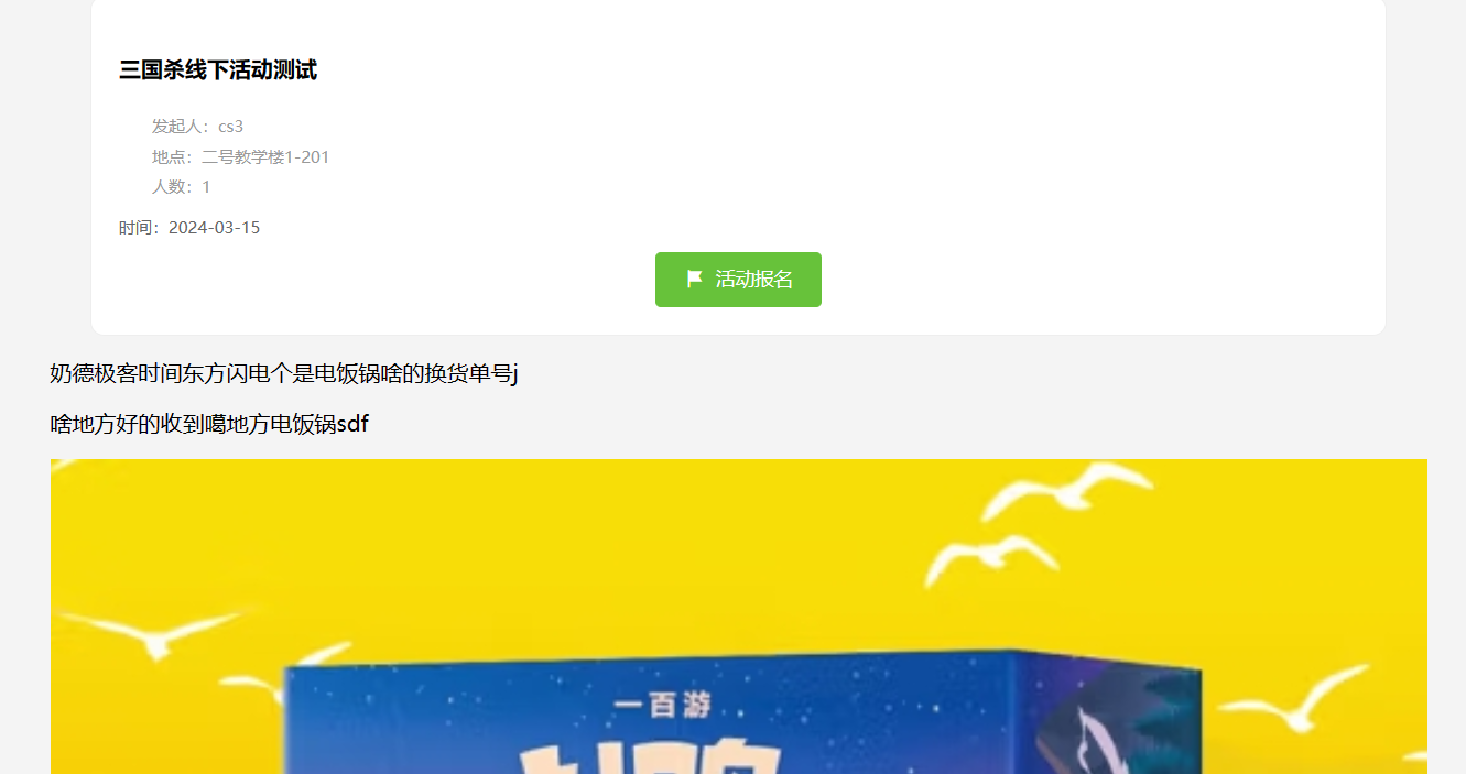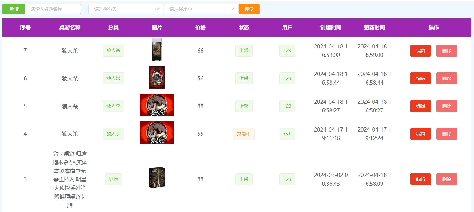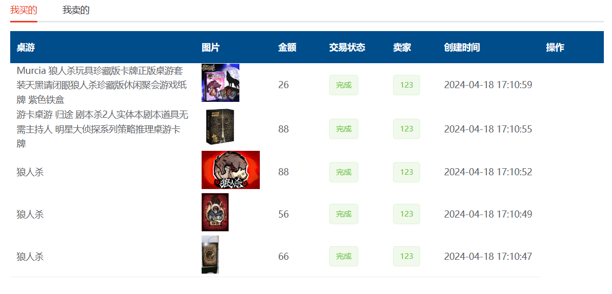 Key words: Spring Boot; HTML5; Activity management; Board game trading