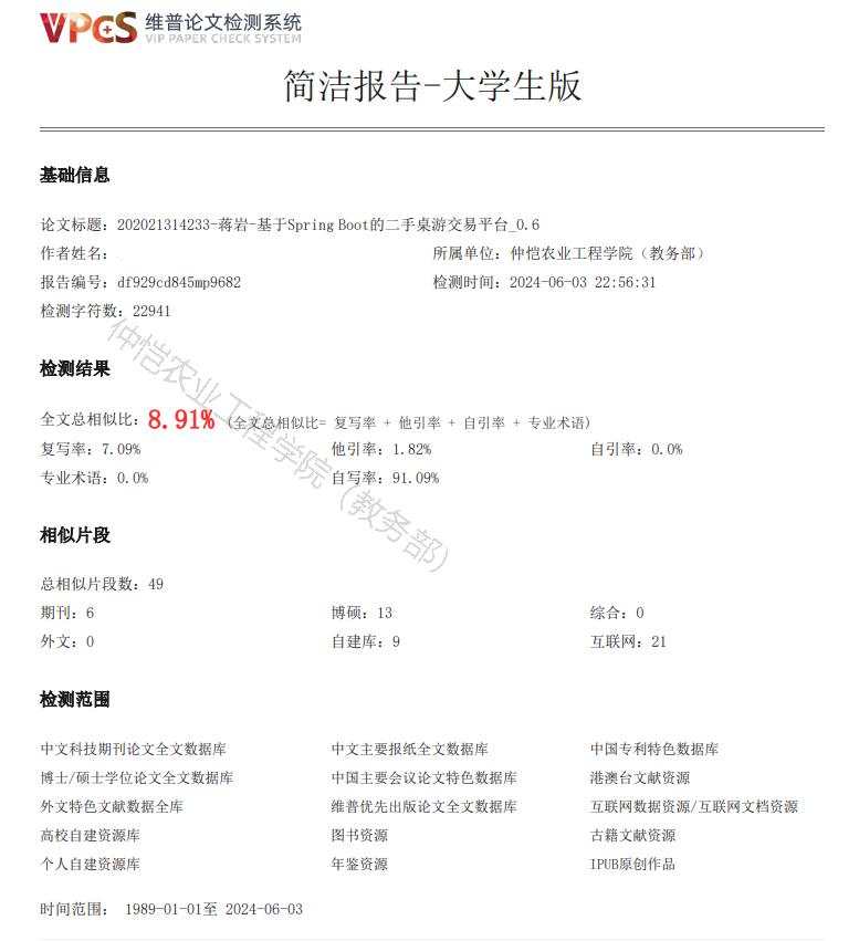 近年来,随着剧本杀等线下桌游在中国的兴起,桌面游戏领域吸引了众多玩家的关注。然而,桌游通常规则复杂且价格昂贵。市场上迫切需要一个二手交易平台,以降低桌游成本,简化交易流程,并推动桌游文化的普及。本文采用了Spring Boot框架开发了一个二手桌游交易平台,提供了购买桌游、贩卖桌游、发布桌游活动、想要购买的桌游、管理拥有桌游等功能,实现了玩家自由交易,灵活地参与桌游活动。随后,通过对二手交易平台的需求进行了分析,并对本平台的功能与性能进行了确认。主要功能有发布求购、查看交易记录、报名管理、发布桌游、查看活动等,协助管理员管理系统信息。本文主要阐述了该软件的主要功能,主要内容有软件体系结构的建立,功能模块流程图,关键代码和接口的设计。本课题研究结束后,对该课题进行了相关的实验研究,并在此基础上对该课题进行了初步的开发和验证。