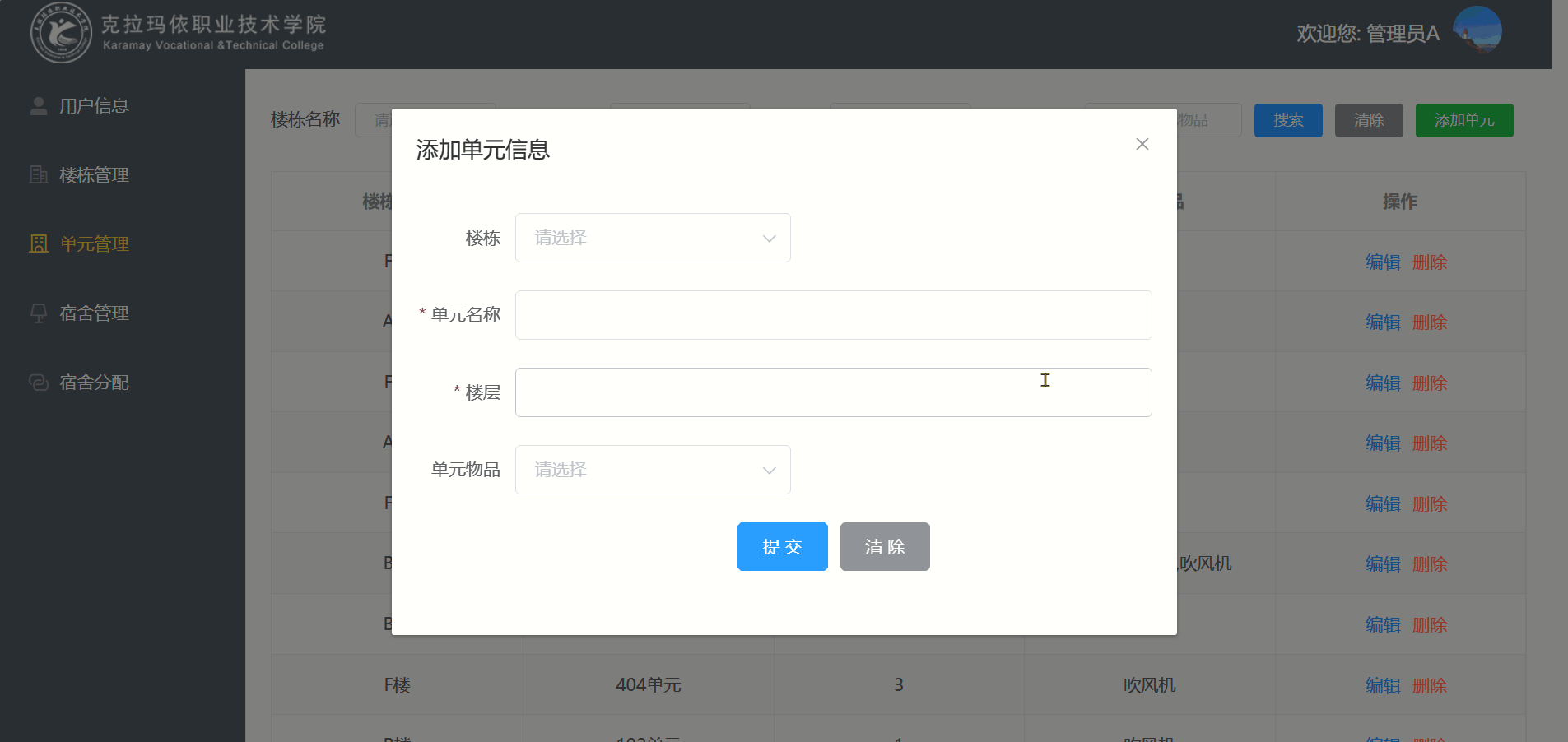 o 提供单元信息的查询和编辑功能,确保宿舍资源的有序管理。
