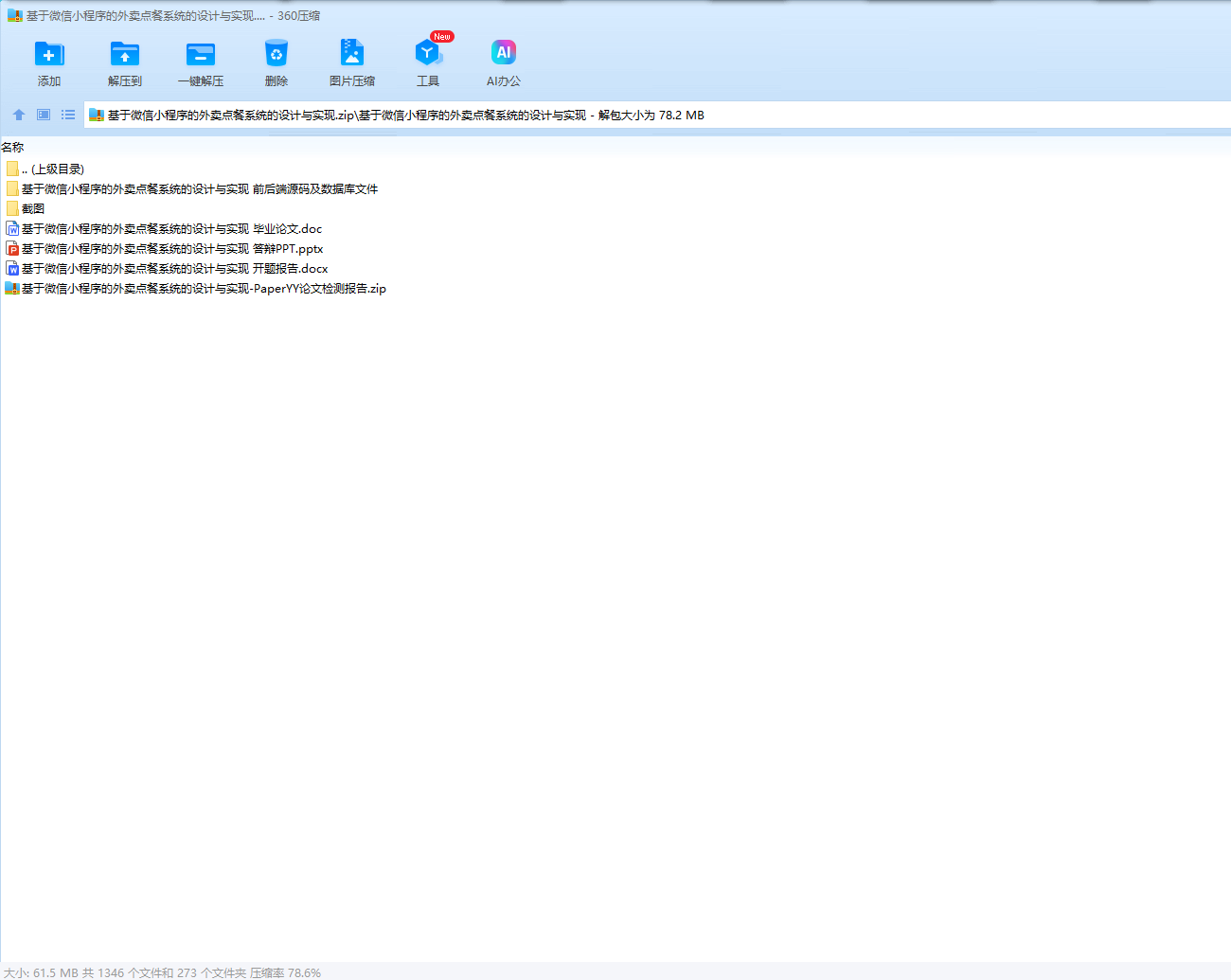 Key words: WeChat applet; takeout ordering system; Java development; SSM framework; MySQL database