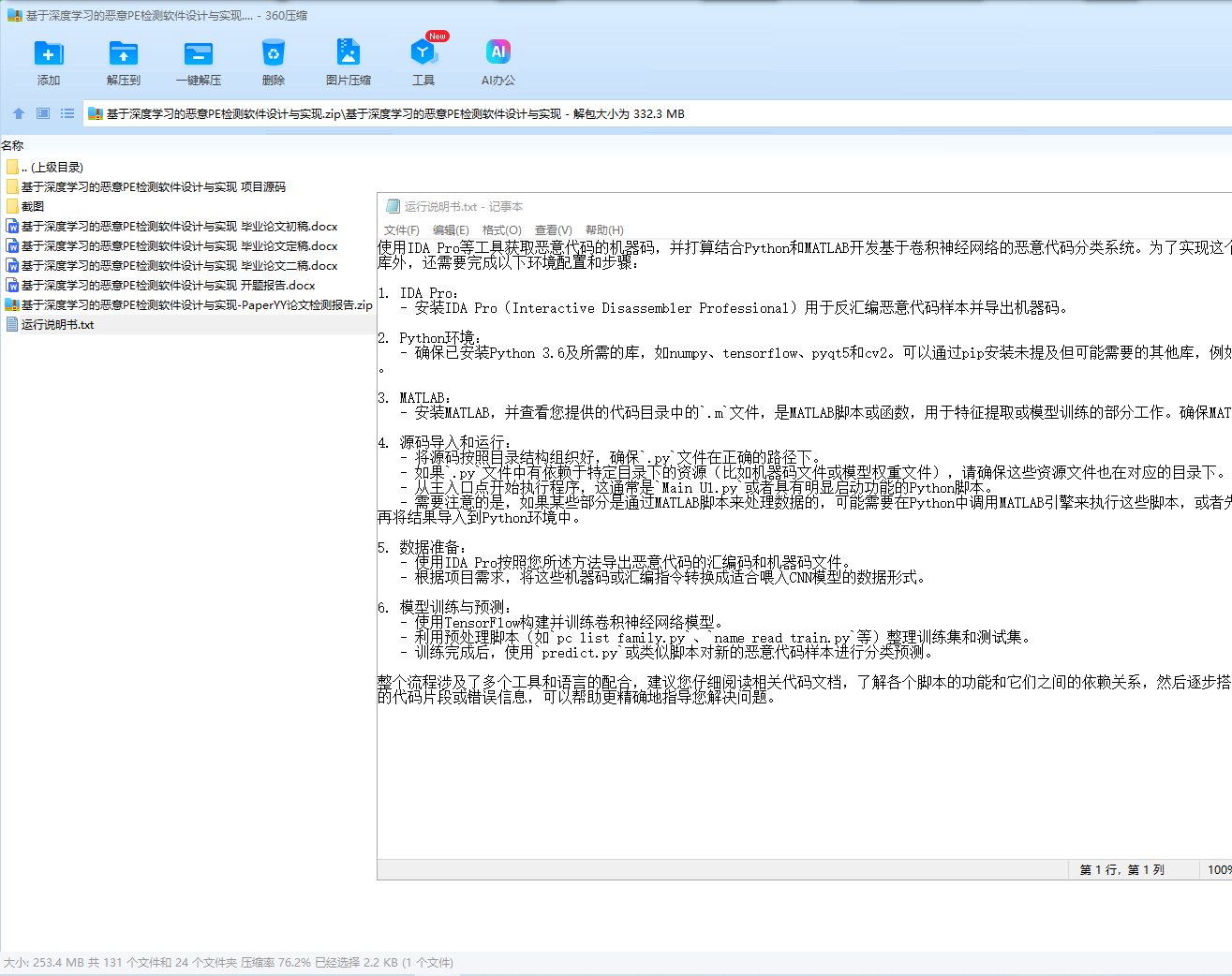 随着网络安全领域对恶意软件检测技术的迫切需求,结合深度学习在特征提取和行为分析方面的优势,本研究旨在设计与实现一个能够高效识别恶意PE文件的软件。PE(Portable Executable)文件作为Windows操作系统下的一种可执行文件格式,其安全性对系统防护至关重要。