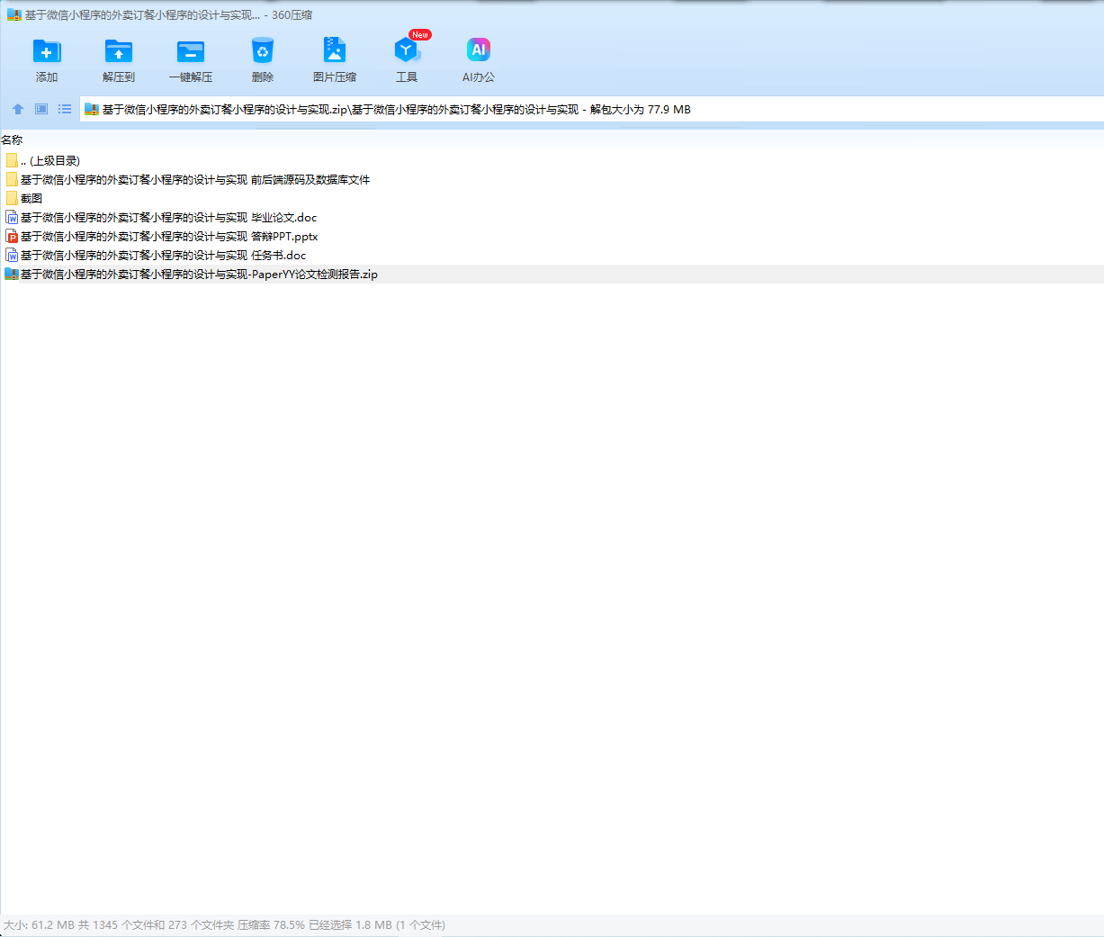 Key words: WeChat applet; takeout ordering system; Java development; SSM framework; MySQL database