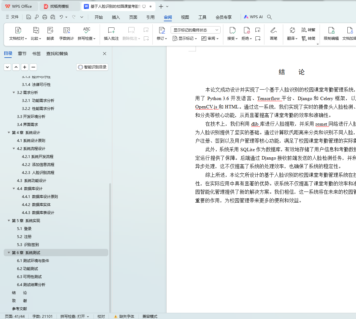 Key words: face recognition; campus classroom attendance; Django; Tensorflow; SQLite; real-time detection