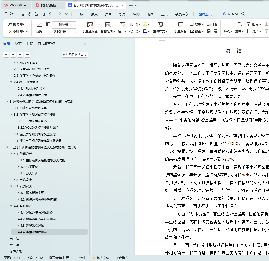 Key words: automatic garbage classification; knowledge graph; deep learning; YOLOv5s model; Python