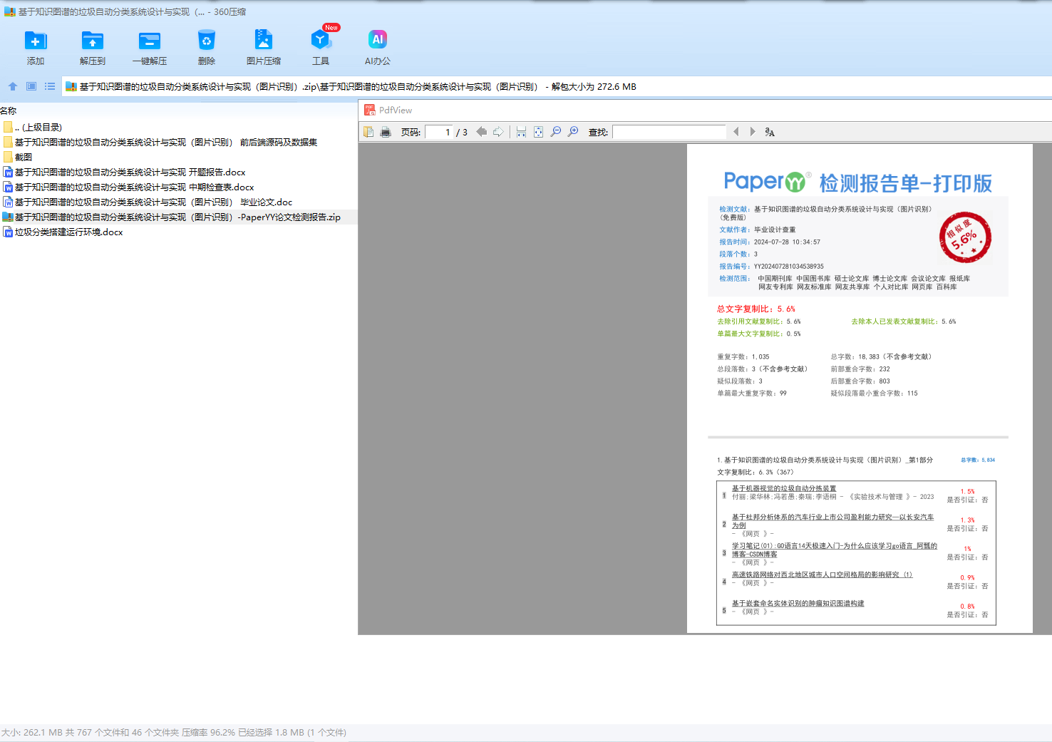 随着国内垃圾数量的快速增长,传统的人工垃圾分类方法已无法满足高效、准确的需求。本文提出了一种基于知识图谱的垃圾自动分类系统,该系统利用深度学习算法,特别是轻量级的YOLOv5s模型,对垃圾图像进行自动识别和分类。经过深入调研与比较,我们选择了YOLOv5s模型,因其在保持高准确率的同时,参数量较小,适用于移动端的实际应用。