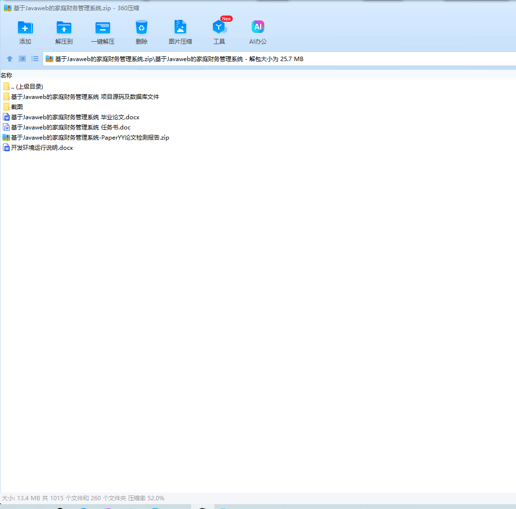 本研究设计并实现了一个基于JavaWeb的家庭财务管理系统,该系统采用了SSM(Spring、SpringMVC、MyBatis)框架作为后端开发技术,使用MySQL数据库作为数据存储方案。该系统不仅实现了基本的家庭成员和户主账户管理功能,还进一步扩展了日常收支、借款还款、预算设置以及收支统计等财务管理模块。通过权限控制,不同用户可以在系统中执行各自权限范围内的操作,确保数据的安全性和准确性。在户主和家庭成员的管理模块中,系统提供了详细的财务记录功能,包括收入、支出、借款、还款等,以及对应的记录管理。此外,系统还支持家庭预算和个人预算的设置,帮助用户更好地规划和管理家庭财务。通过收支统计功能,用户可以清晰地了解家庭的财务状况,为家庭财务管理提供决策支持。