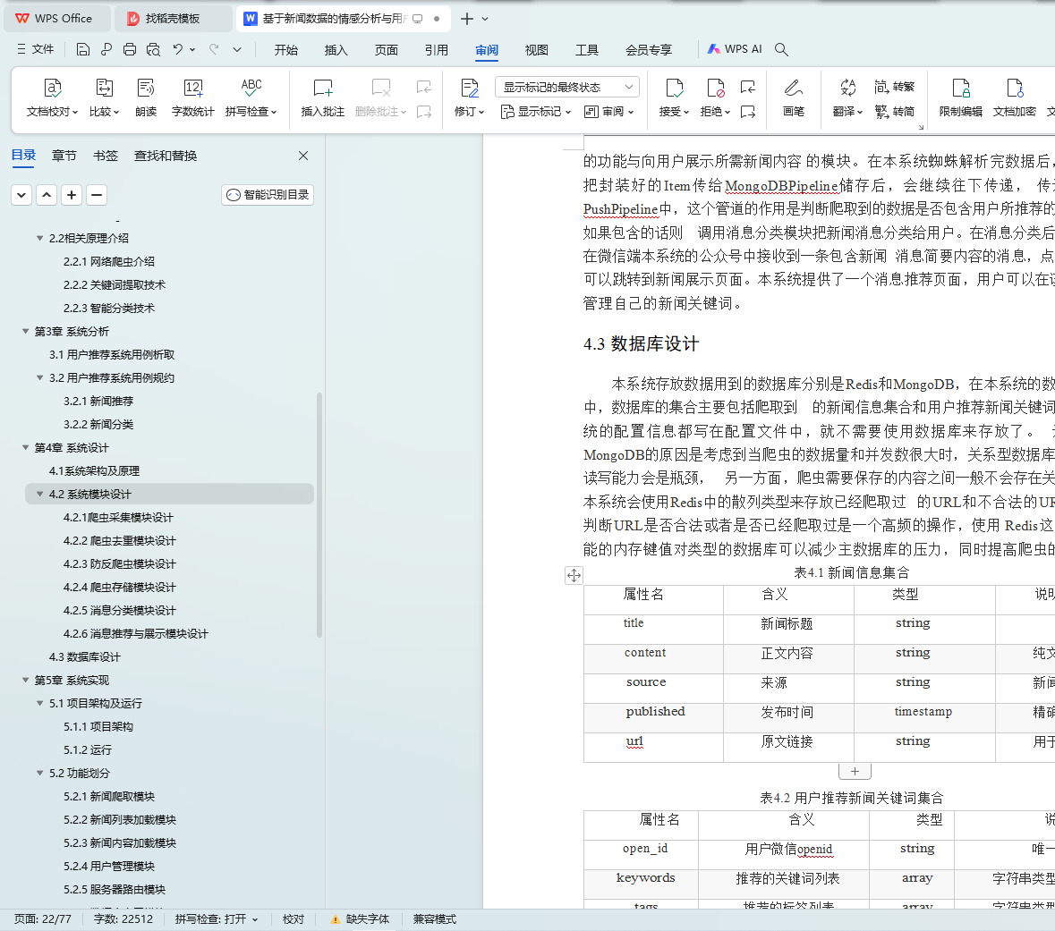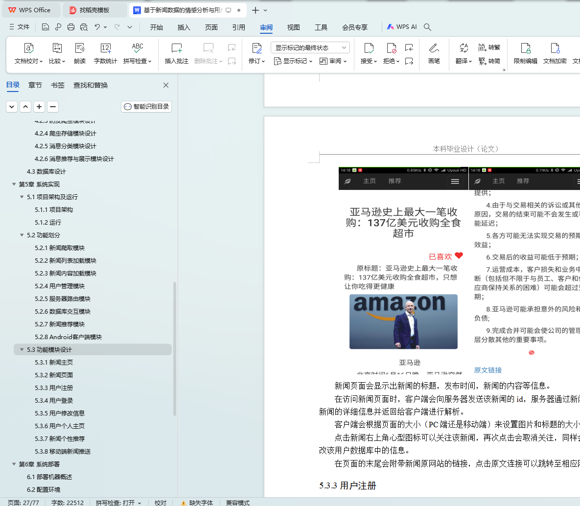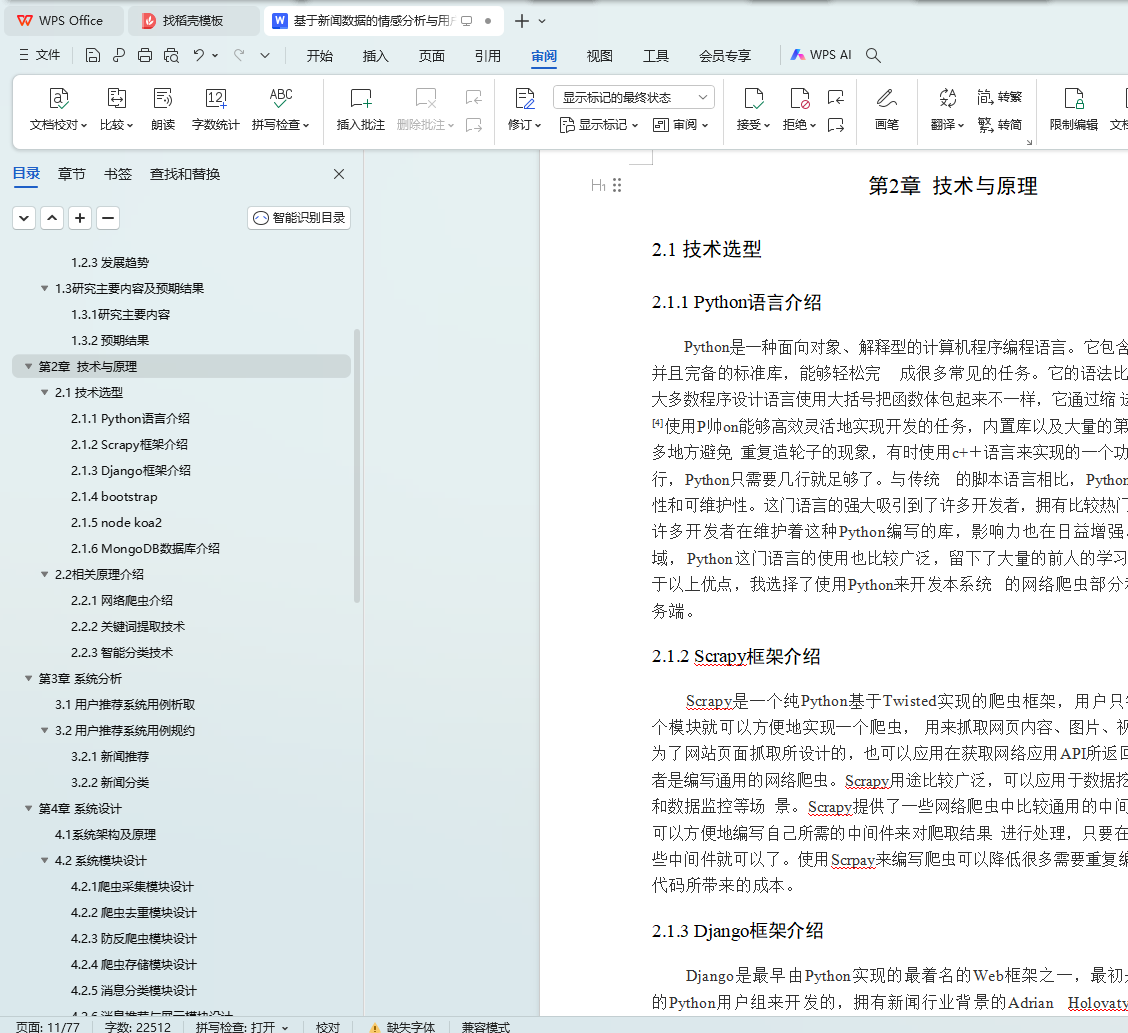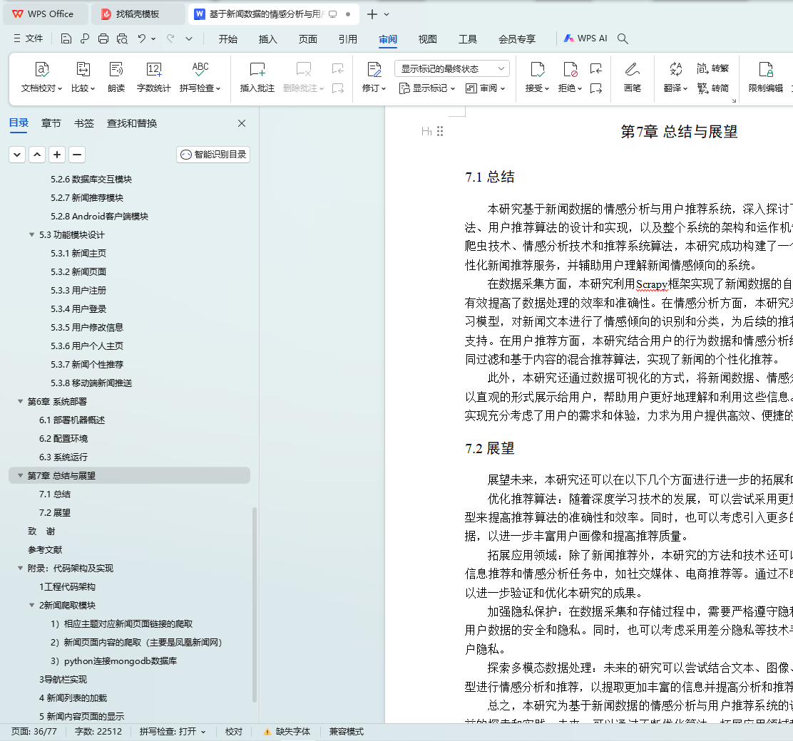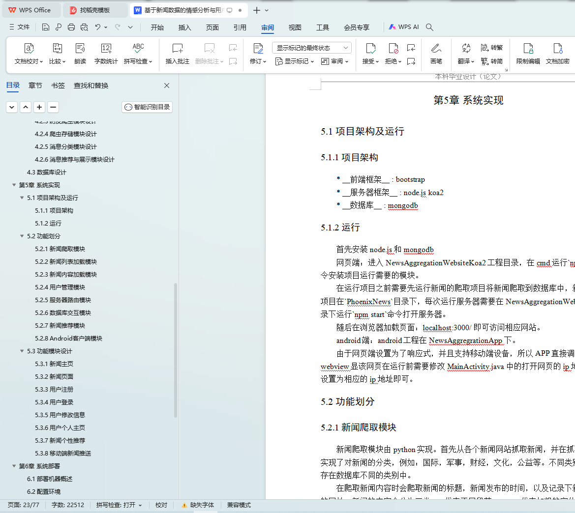 本文研究了基于新闻数据的情感分析与用户推荐系统的设计与实现。利用Python的Scrapy框架,设计了一个能够定时定向分析和采集网络新闻数据的爬虫网络。该系统不仅实现了新闻数据的分类、去重和存储,还通过用户分享、评论等功能,构建了一个全新的新闻网站。为了提升用户体验,本文进一步实现了新闻数据的可视化,旨在帮助用户在海量新闻数据中快速获取有价值的信息。此外,针对网站的反爬虫策略,本文提出了应对策略,以确保爬虫的稳定运行。技术实现上,前端采用bootstrap框架,后端采用node.js的koa2框架,数据库使用mongodb,确保了系统的可扩展性和灵活性。用户可以通过浏览器或Android APP访问该网站,享受个性化的新闻推荐和便捷的新闻浏览体验。
