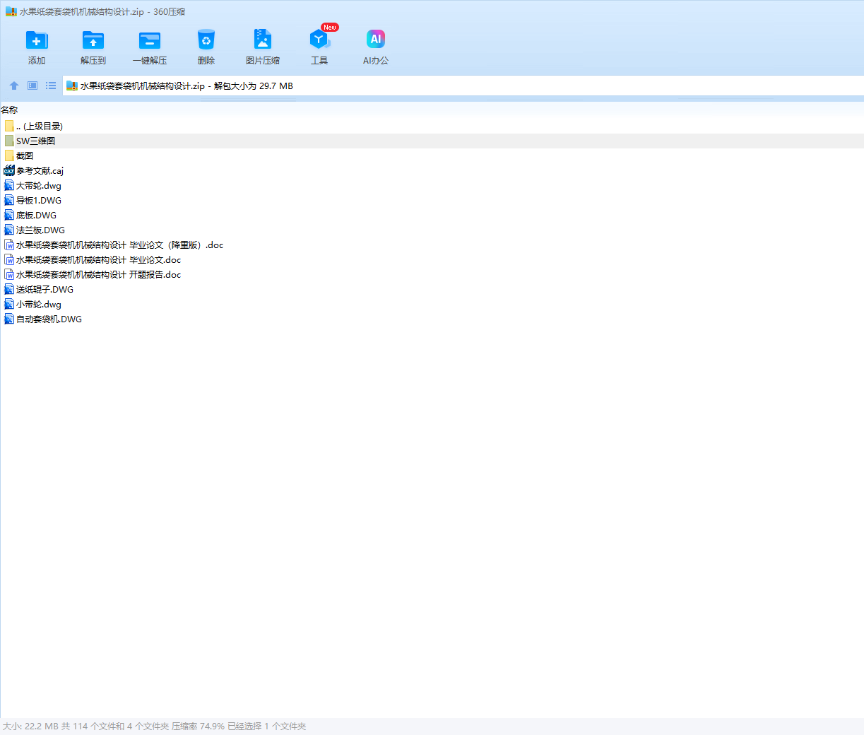 本设计充分考虑了机械动力学分析,使机械运行平稳。设计过程参考了各类套袋机械设计的长处,同时借鉴了其它机械的优点完成了水果压紧机的设计。本机器套袋能力为50~120袋/分。