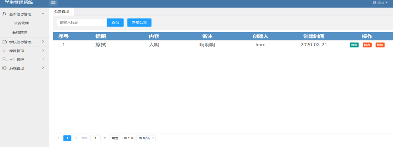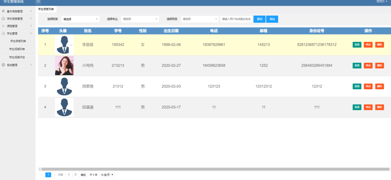 This project has successfully constructed a student information management system based on the Java platform. The system adopts Spring, Spring MVC, Hibernate and other technical framework, and integrates the B / S architecture, while combining the front-end Layui framework and MySQL database for in-depth development. The system has carefully designed three roles of students, teacher and administrator to meet the functional needs of different user groups. After logging in, students can freely view, edit and submit basic personal information, and master personal performance and teacher evaluation in real time. After logging in, teachers can flexibly query student information, evaluate and score students, and manage relevant information of semester, course and course binding. Managers enjoy higher authority, fully manage college, major and class information, and status management. In addition, the administrator can also manage the school news, flexibly operate the system modules, and monitor the system login and abnormal log information in real time. The successful implementation of this system has effectively improved the efficiency of student information management, and provided an efficient and convenient information service scheme for educational institutions.