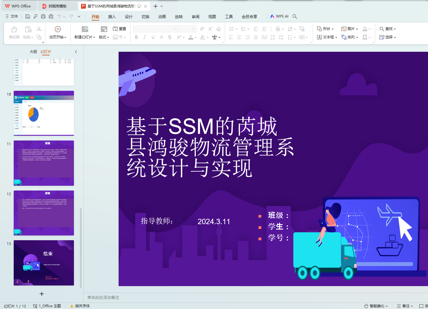 The topic selection of this graduation design mainly comes from the actual enterprise needs and the current development trend of the logistics management field. In the process of market research and actual enterprise visits, it was found that Ruicheng County Hongjun Company has problems such as low efficiency in logistics management and information level to be improved. Combined with the current trend of logistics management informatization, as well as personal mastery of SSM framework, JAVA development language and other technologies, the "SSM" is determined as the graduation design topic. This topic aims to solve the practical problems of enterprises through technical means, but also to combine theoretical knowledge with practical application, to improve personal comprehensive development ability.