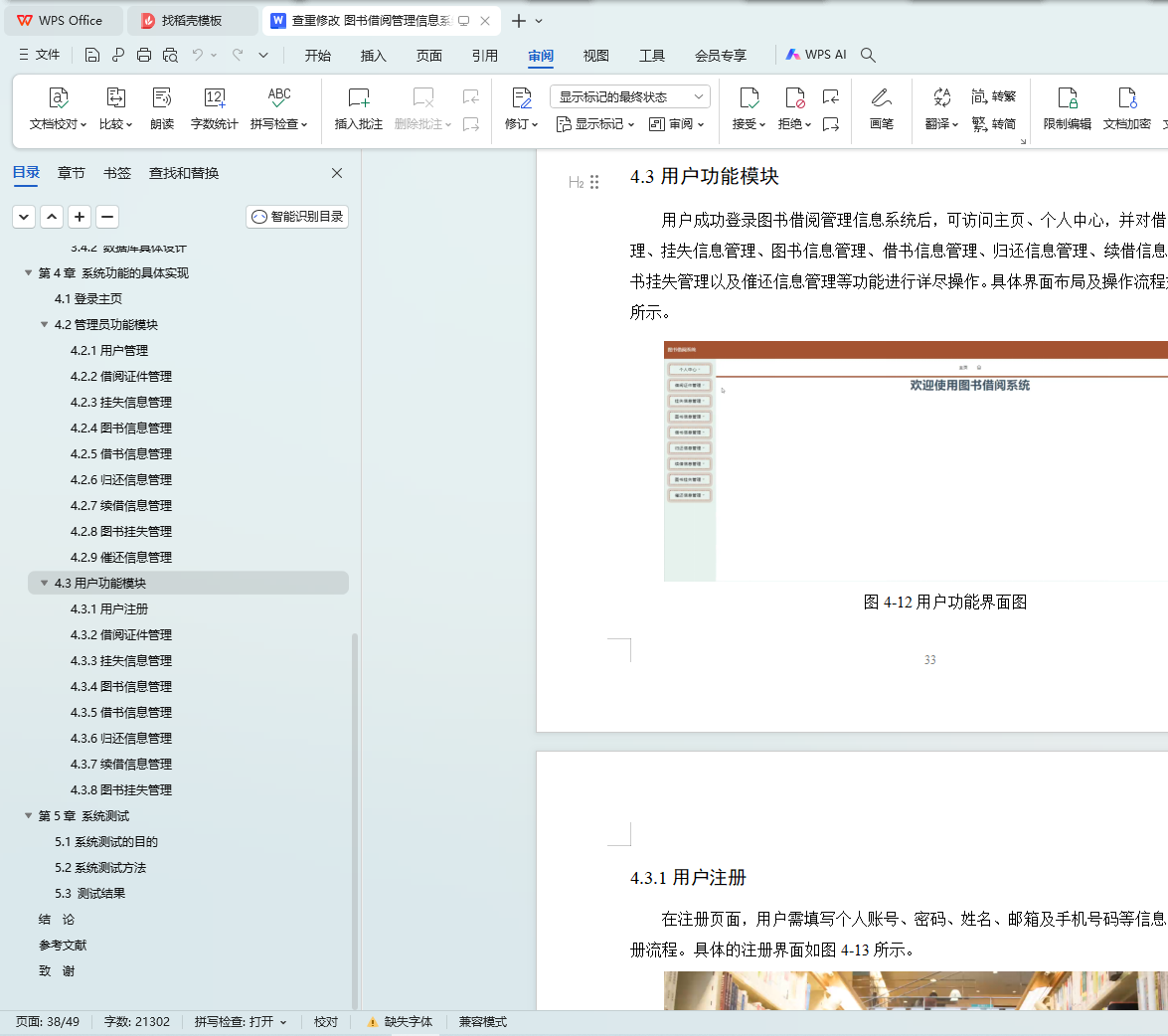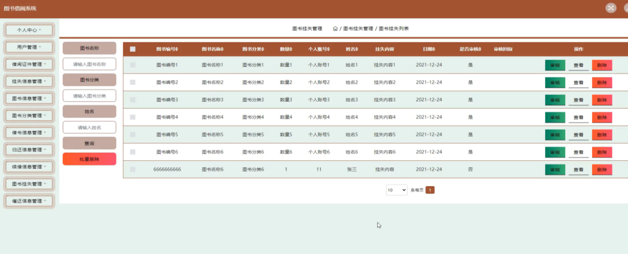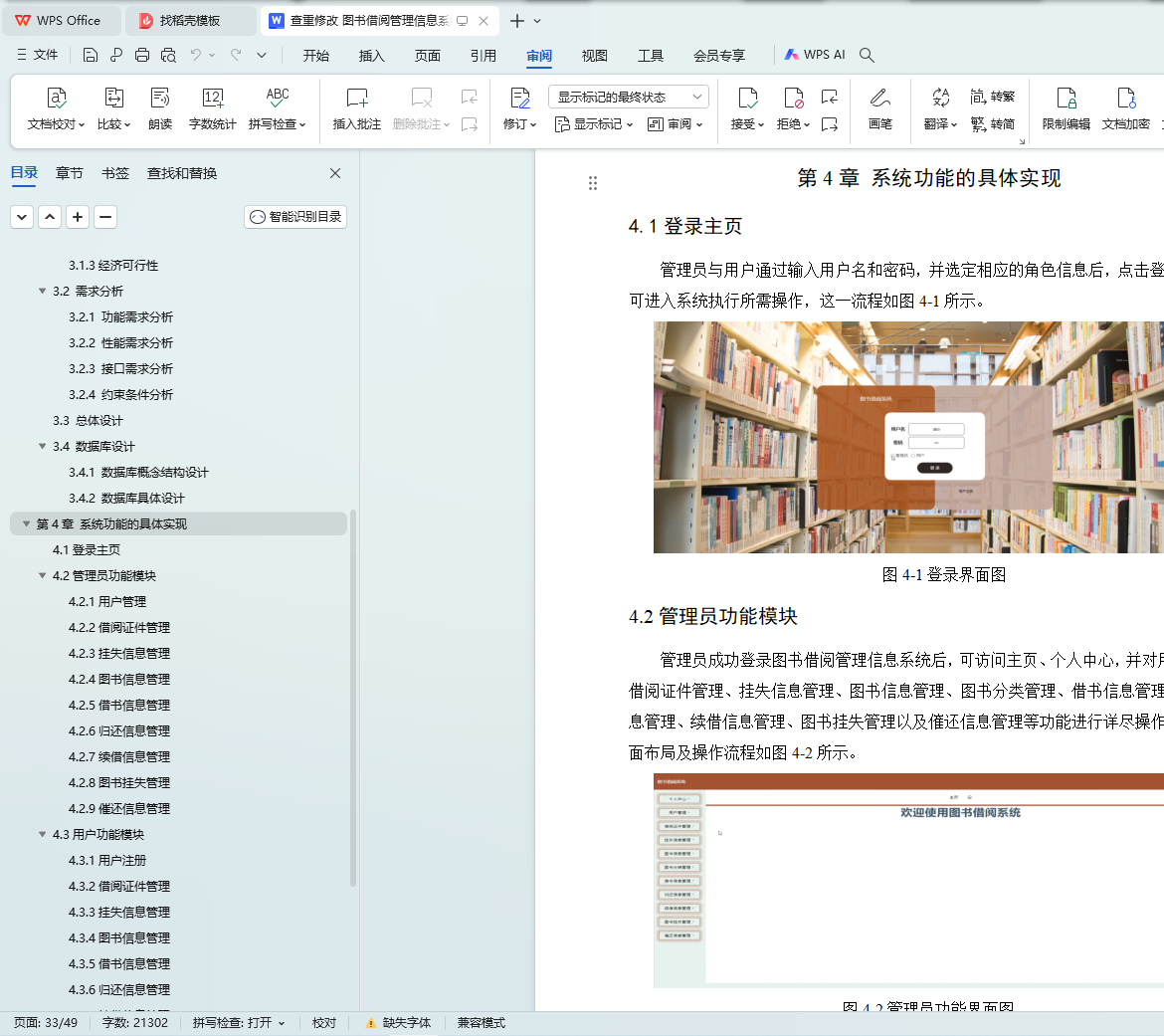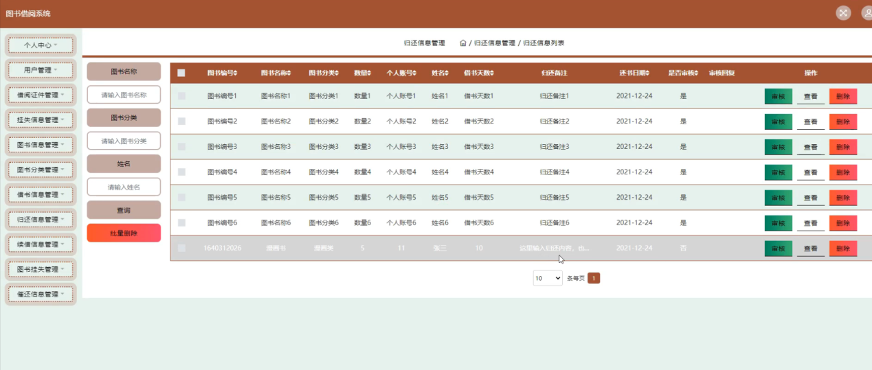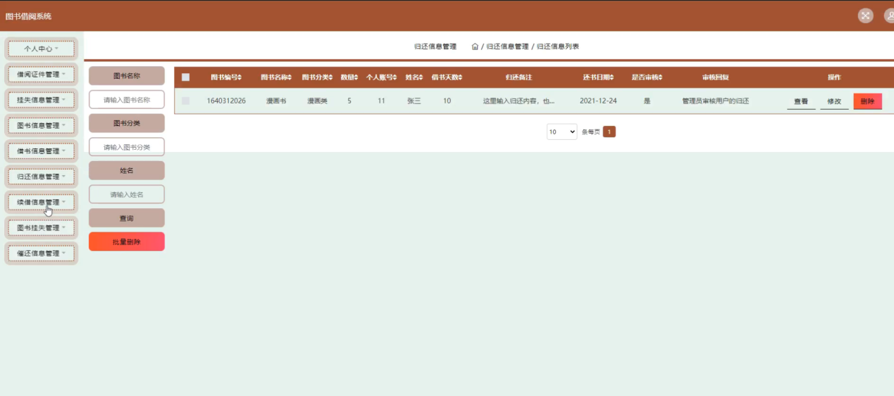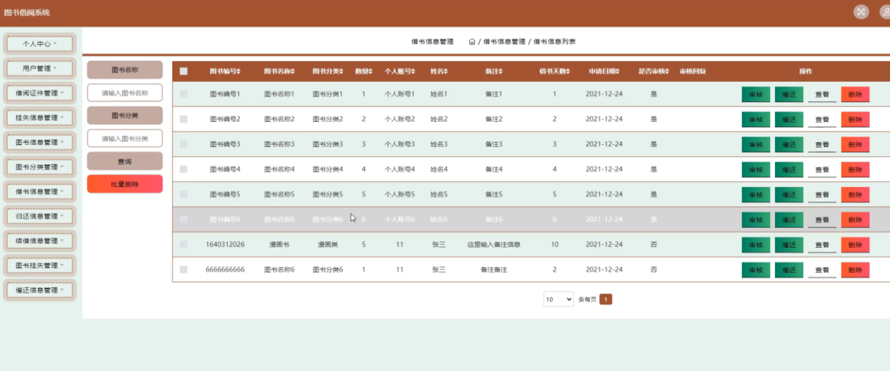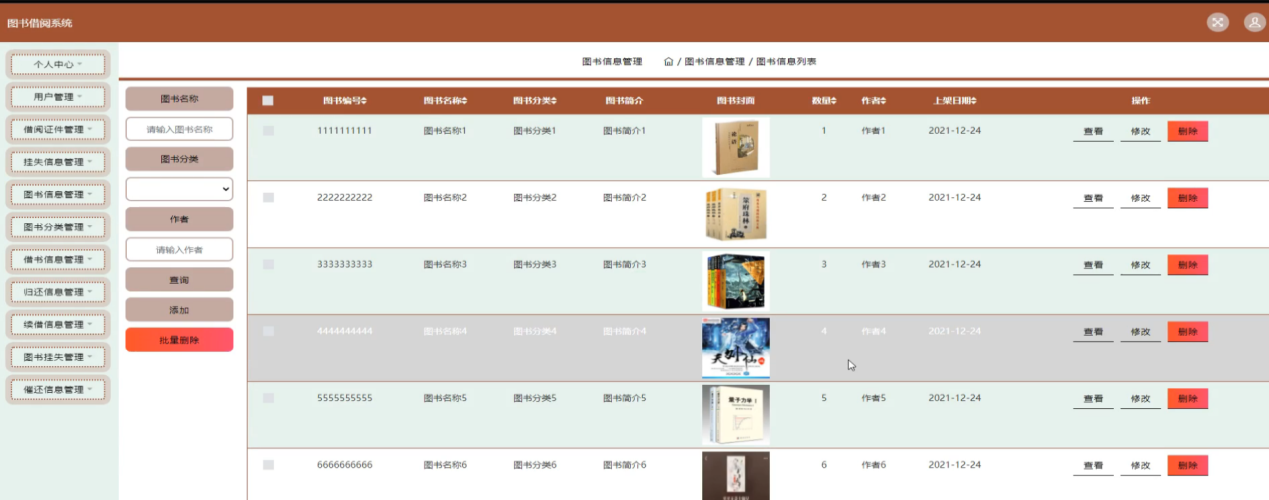 本文旨在展示一个基于Java技术的图书借阅管理系统的完整设计与实现过程。该系统采用B/S架构,后端选用MySQL数据库作为数据支撑,并通过Tomcat服务器实现服务的稳定供给。该系统包含多个核心功能组件,如主页展示、用户个性化中心、用户账户管理、借阅证件的维护、挂失信息的记录、图书信息的更新、图书类别的划分、借书记录的追踪、归还信息的统计、续借服务的提供以及图书挂失处理等功能。这些功能模块的协同工作,为图书馆的日常借阅管理提供了全面的解决方案,有效提升了管理操作的便捷性和服务水平的品质。本文深入剖析了系统的架构布局、数据库设计思路以及关键功能模块的实现细节,并对系统在实际运行中的优势及未来可能的改进方向进行了深入探讨。