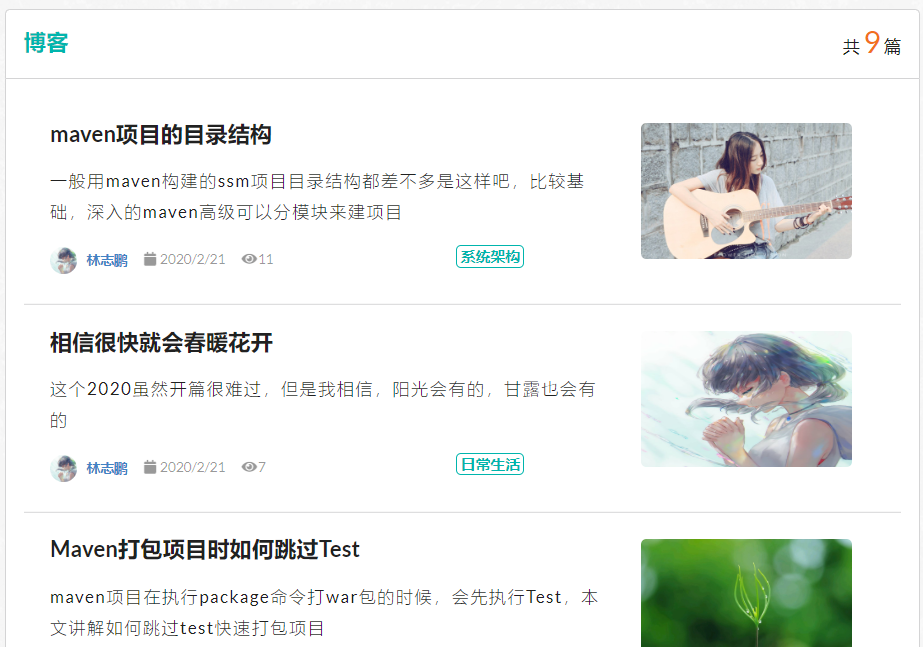 Keywords: Systems Design; MVC; SSM; Personal blog