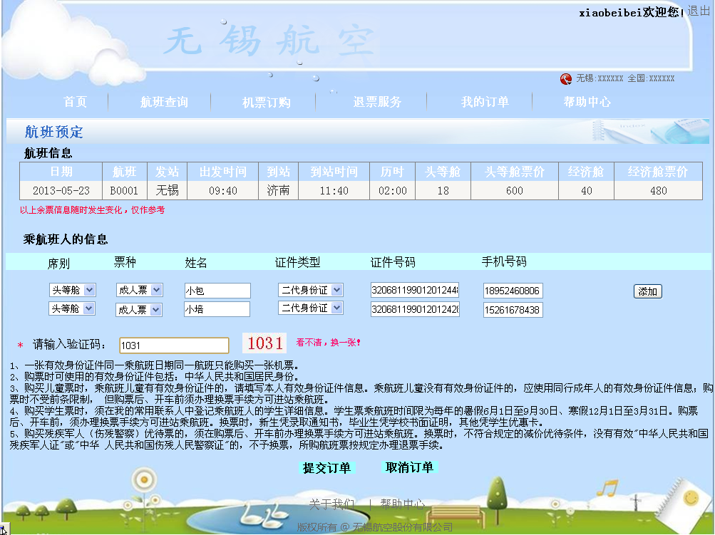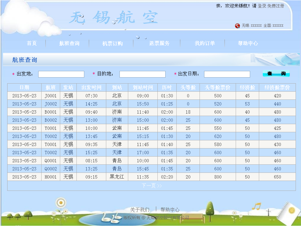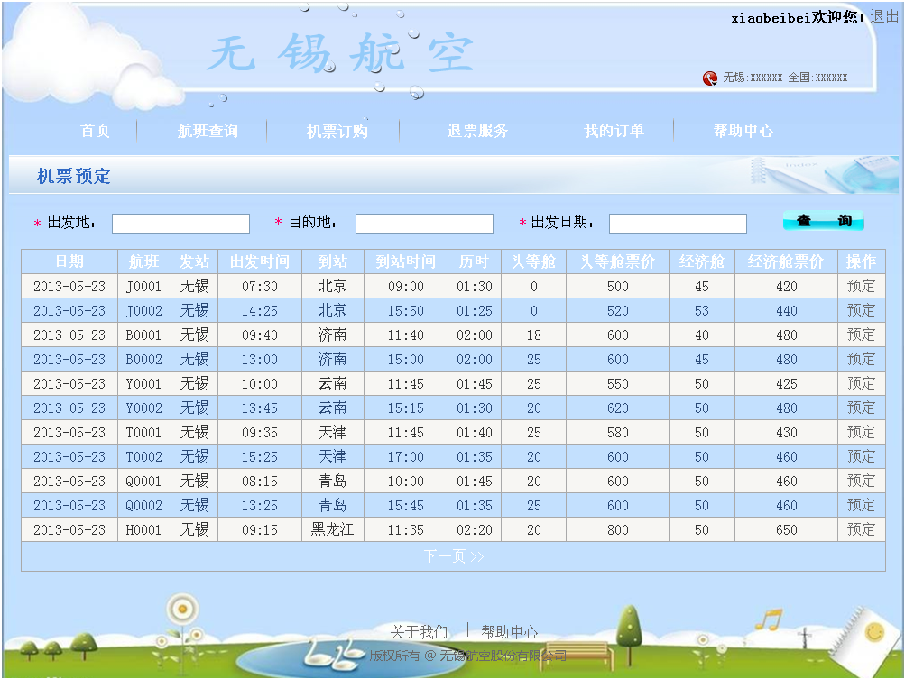 6.1 航空订票系统前台界面