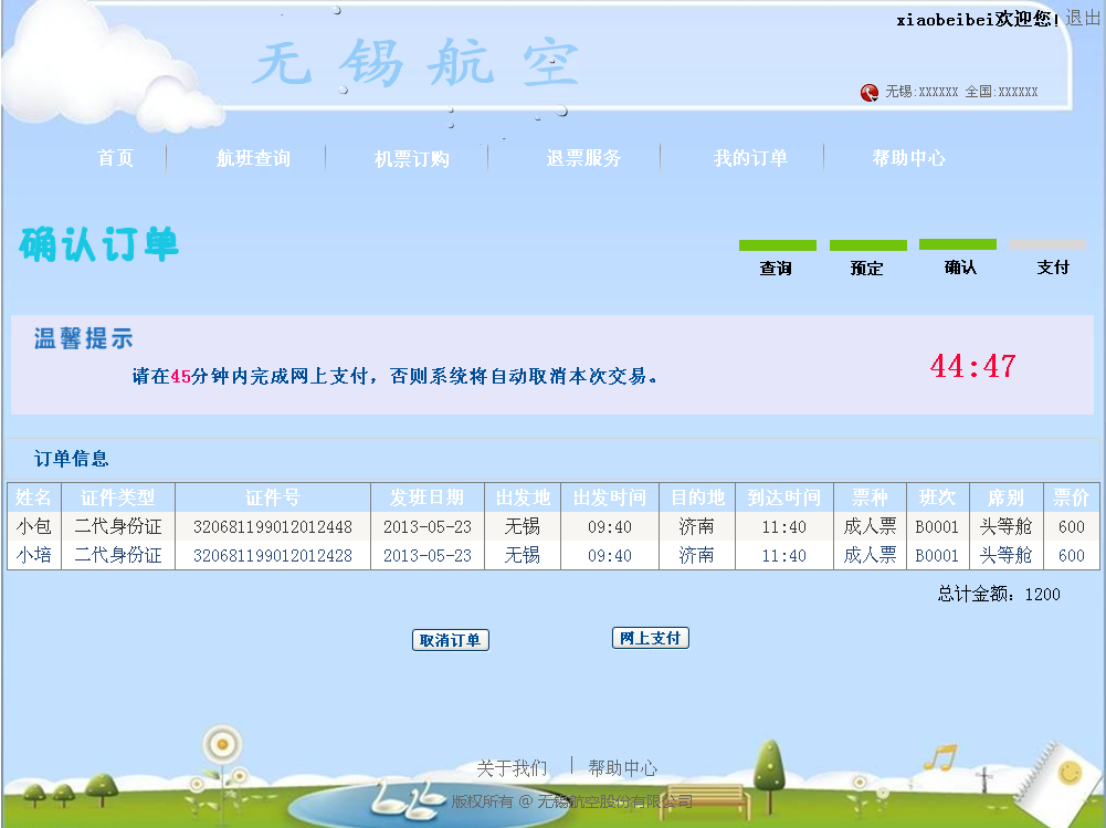 7.1 航空订票系统前台集成测试