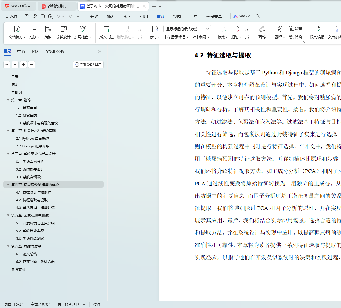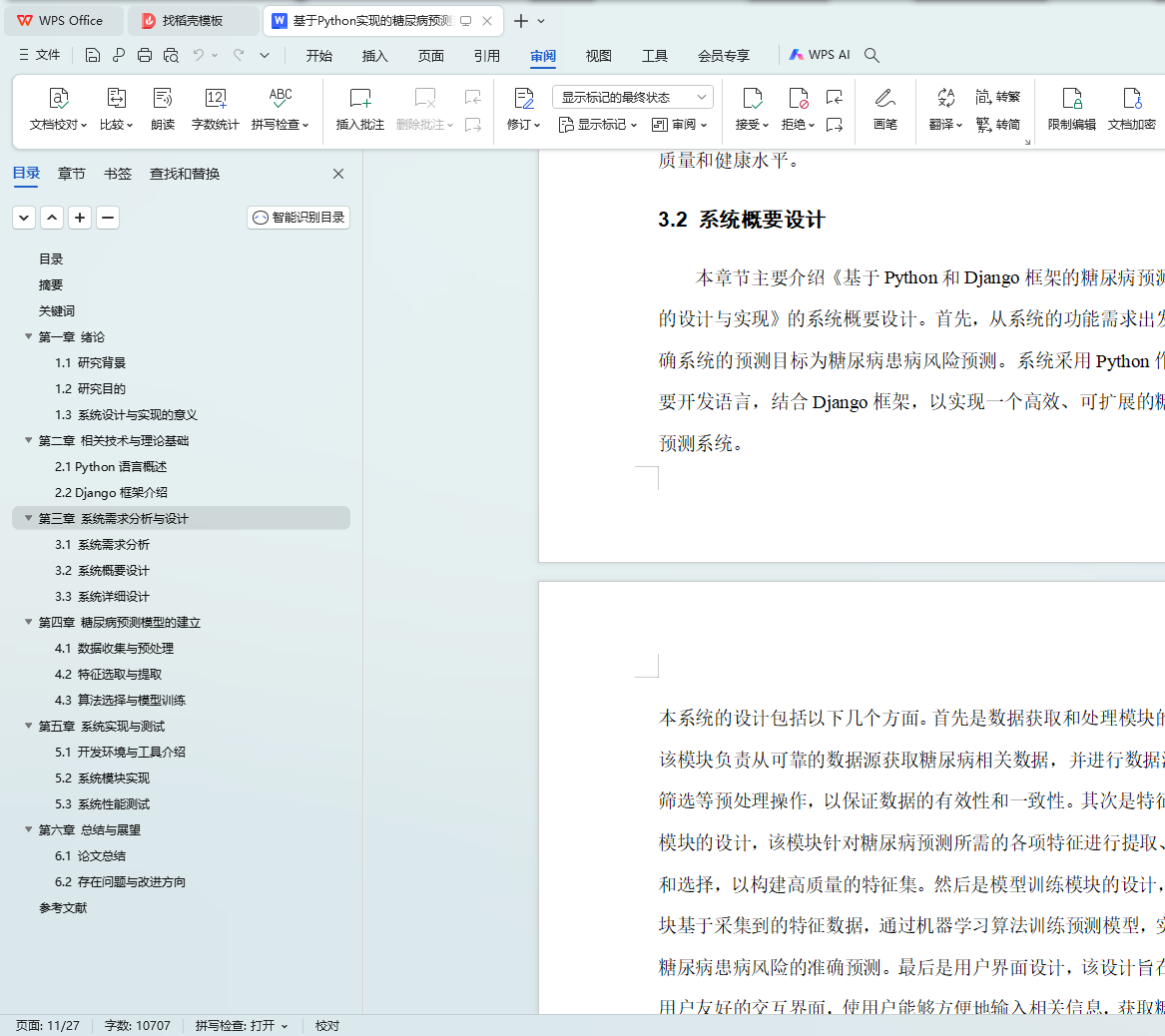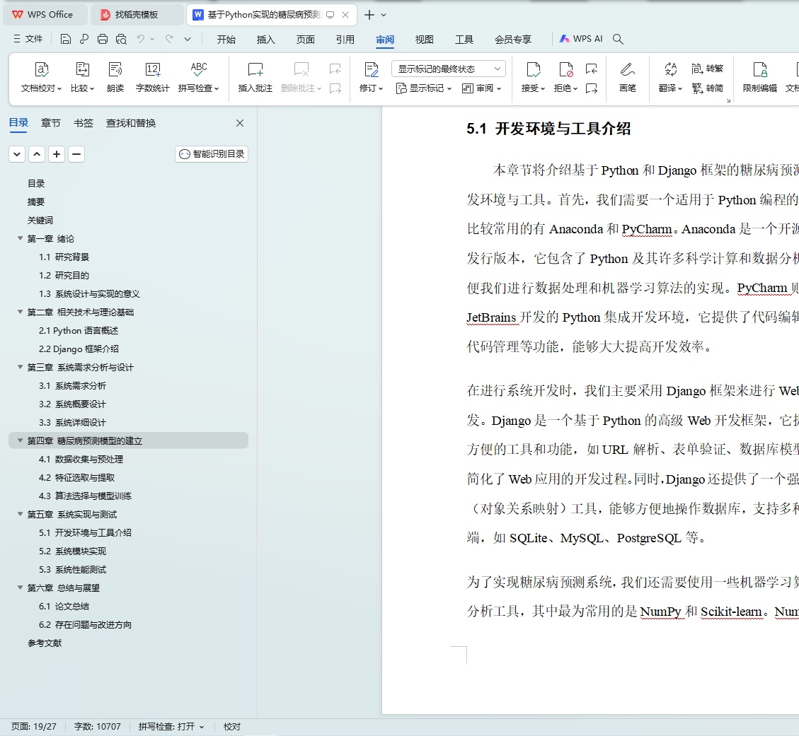 本文基于Python和Django框架,设计并实现了一款糖尿病预测系统。糖尿病是一种常见的慢性代谢性疾病,及时检测和预测糖尿病的发生对于患者的康复和医疗决策具有重要意义。本系统旨在帮助医生和患者准确预测糖尿病风险,并以此为基础提供个性化的预防、治疗建议。系统的设计与实现主要包括数据采集、数据预处理、模型构建、Web界面设计等环节。首先,采集患者的临床数据和生物指标数据,包括年龄、性别、血压、血糖等。然后,通过数据预处理对原始数据进行清洗、缺失值填充、特征选择等处理,为模型构建做准备。接下来,使用机器学习算法构建糖尿病预测模型,经过训练和验证,得到准确性较高的模型。在系统实现方面,利用Python编程语言开发了后台的业务逻辑,使用Django框架实现了Web界面。通过用户登录、数据上传、查询等功能,医生可以方便地管理患者的数据,并进行糖尿病的预测。患者可以通过系统查询自身的糖尿病风险评估结果,并根据建议制定相应的健康管理计划。本系统具有准确性高、使用方便等特点,为医生和患者提供了一个全面、便捷的糖尿病预测工具。未来,可以进一步完善系统功能,如引入更多的特征、改进算法、加入可视化结果展示等,提升系统的性能和用户体验。此外,系统还可以应用于其他慢性疾病的预测和管理,扩大其应用范围和价值。