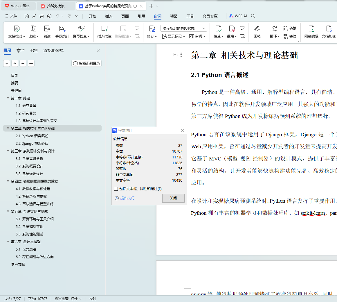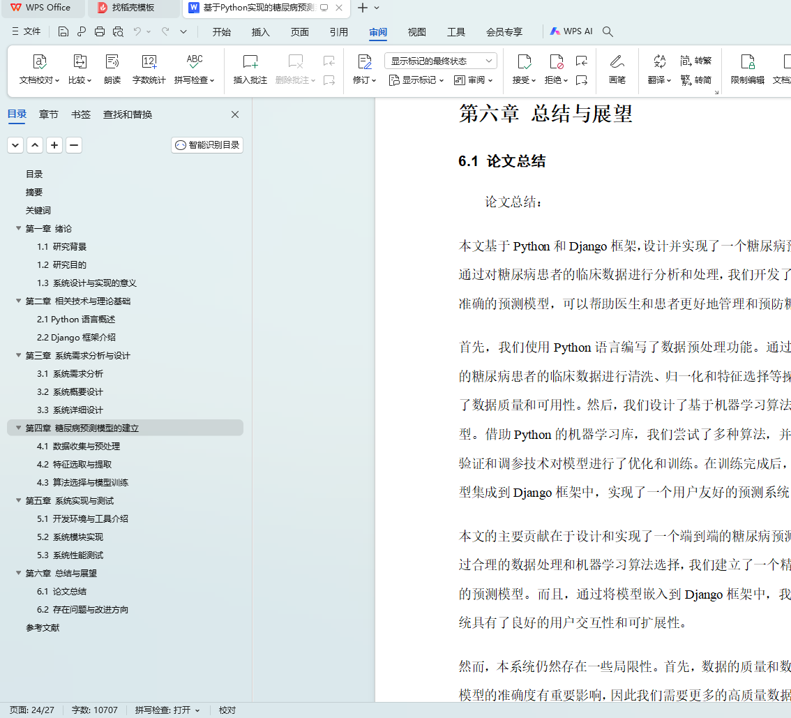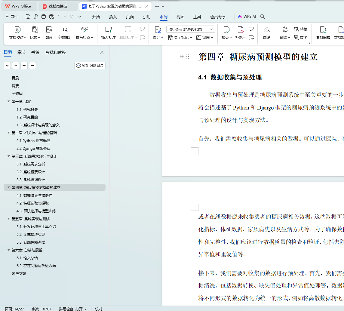 本文基于Python和Django框架,设计并实现了一款糖尿病预测系统。糖尿病是一种常见的慢性代谢性疾病,及时检测和预测糖尿病的发生对于患者的康复和医疗决策具有重要意义。本系统旨在帮助医生和患者准确预测糖尿病风险,并以此为基础提供个性化的预防、治疗建议。系统的设计与实现主要包括数据采集、数据预处理、模型构建、Web界面设计等环节。首先,采集患者的临床数据和生物指标数据,包括年龄、性别、血压、血糖等。然后,通过数据预处理对原始数据进行清洗、缺失值填充、特征选择等处理,为模型构建做准备。接下来,使用机器学习算法构建糖尿病预测模型,经过训练和验证,得到准确性较高的模型。在系统实现方面,利用Python编程语言开发了后台的业务逻辑,使用Django框架实现了Web界面。通过用户登录、数据上传、查询等功能,医生可以方便地管理患者的数据,并进行糖尿病的预测。患者可以通过系统查询自身的糖尿病风险评估结果,并根据建议制定相应的健康管理计划。本系统具有准确性高、使用方便等特点,为医生和患者提供了一个全面、便捷的糖尿病预测工具。未来,可以进一步完善系统功能,如引入更多的特征、改进算法、加入可视化结果展示等,提升系统的性能和用户体验。此外,系统还可以应用于其他慢性疾病的预测和管理,扩大其应用范围和价值。