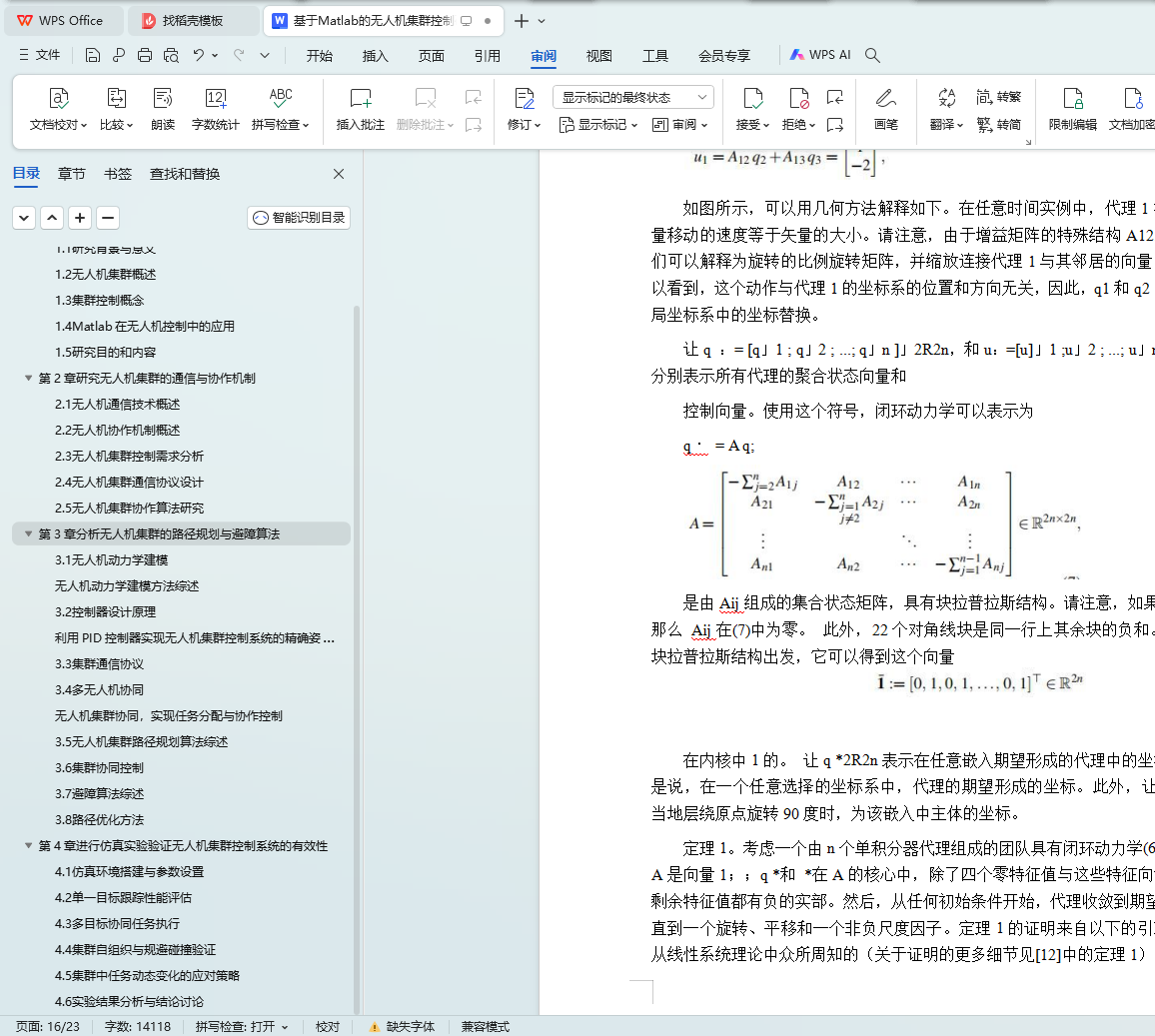 本文基于Matlab对无人机集群控制系统进行研究,主要包括以下几个部分:一、引言。现今无人机技术得到广泛应用,无人机集群系统作为一种新兴技术备受关注。二、相关技术综述。简要介绍了无人机集群控制系统的发展现状,从集群控制理论到无人机动力学模型分析,系统阐述了目前研究的主要方向。三、无人机集群控制系统设计。通过Matlab对集群控制系统进行建模和仿真设计,包括集群编队控制、路径规划和协同决策等内容。四、仿真实验与结果分析。通过Matlab仿真实验,验证了设计的控制系统在不同场景下的性能表现,并对实验结果进行了详细分析。五、结论与展望。总结了本文的研究工作成果,提出了今后进一步深入研究的方向和展望。通过本文对基于Matlab的无人机集群控制系统的研究,为无人机集群技术的发展提供了理论支持和实际应用价值。