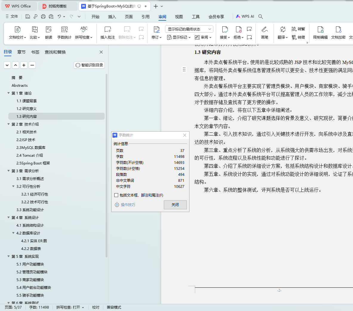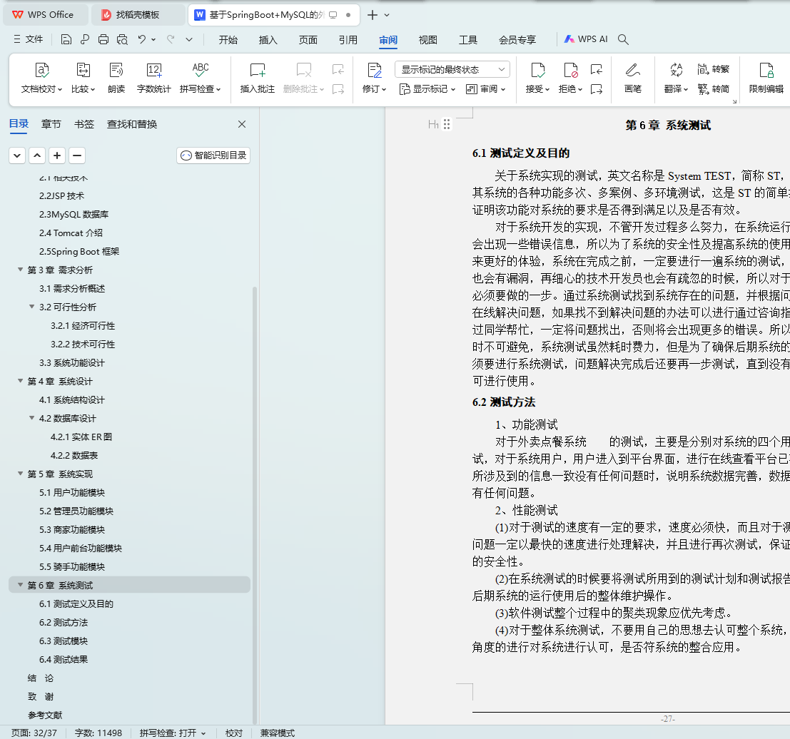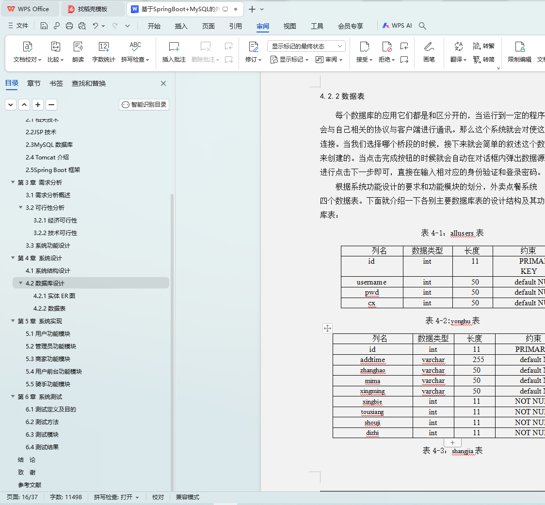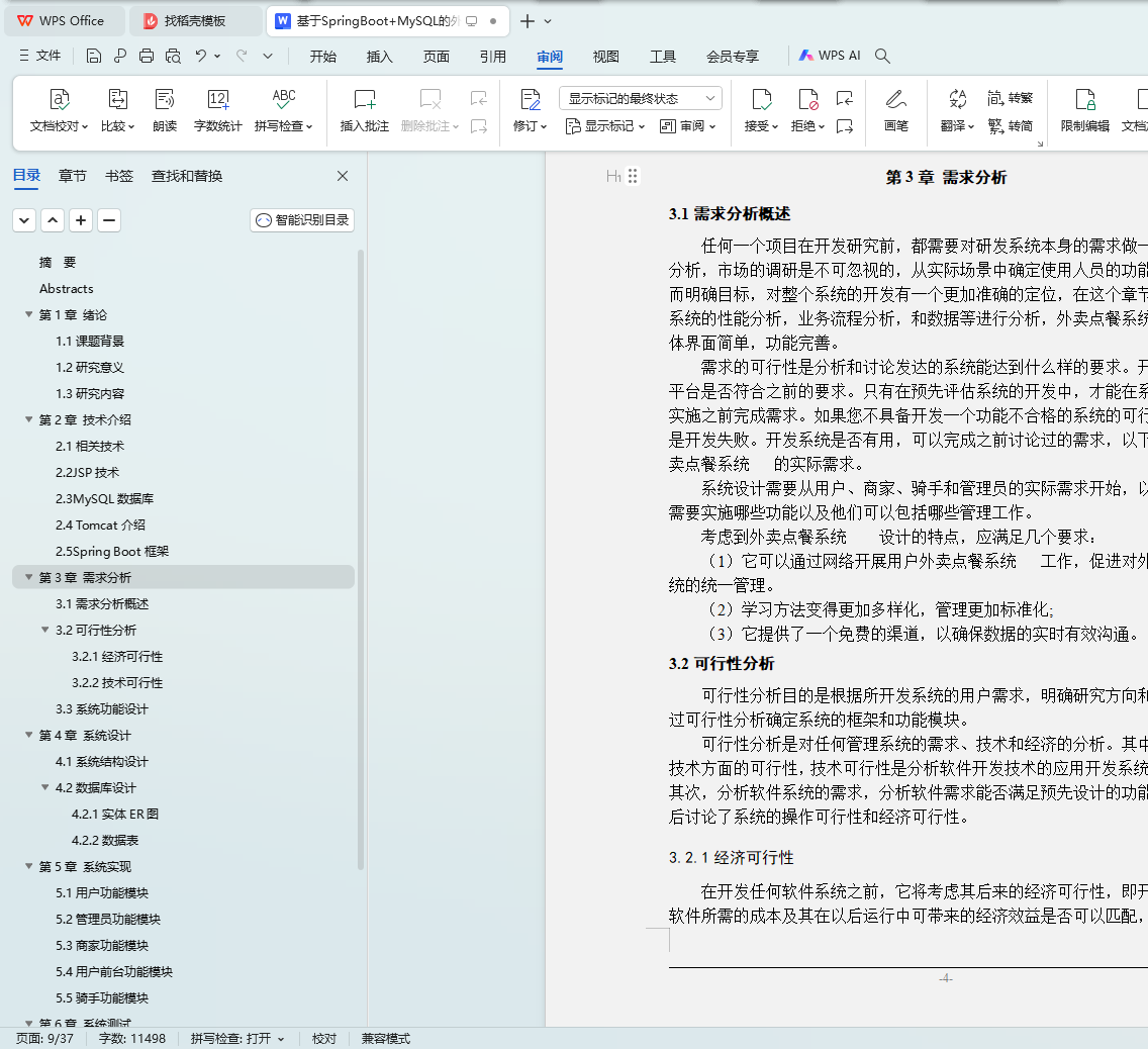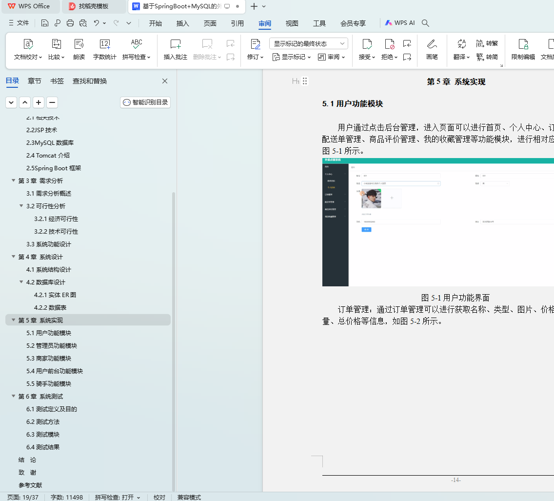 Key words: take out ordering system jsp technology spring boot framework目 录