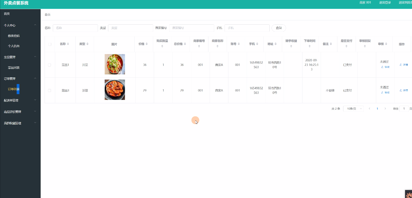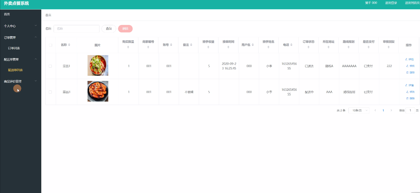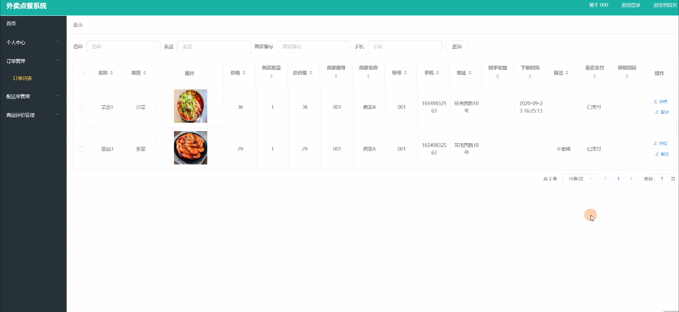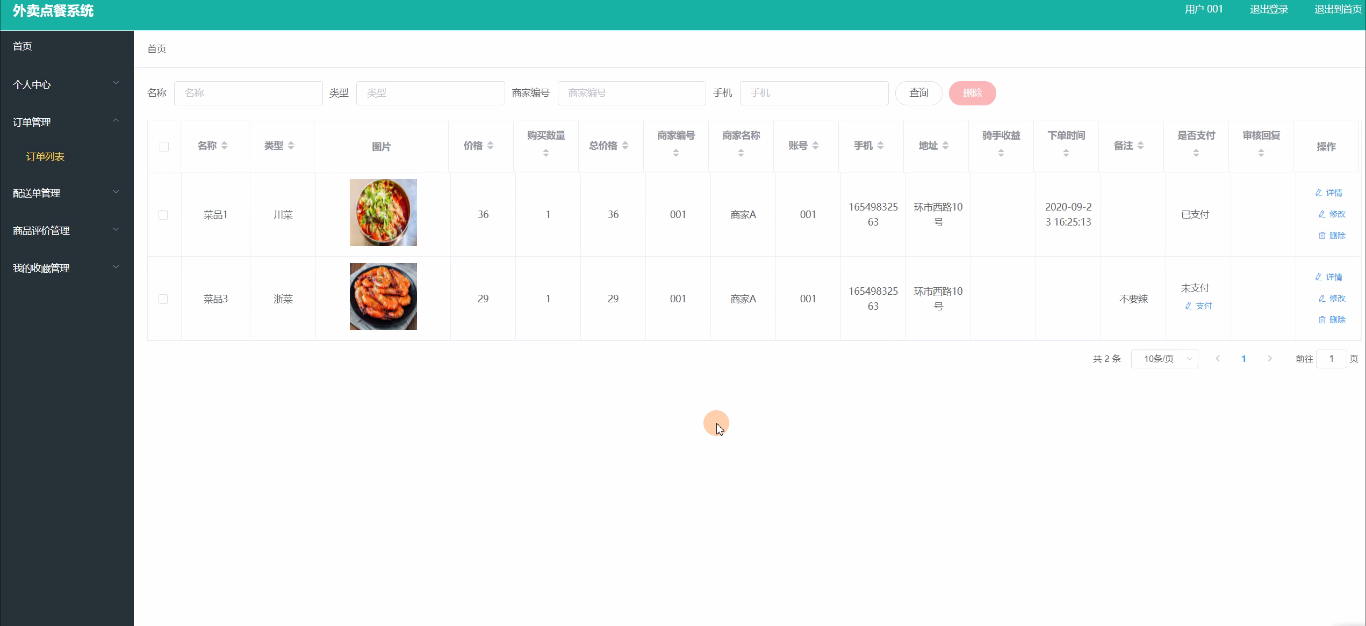 关键字:外卖点餐系统 JSP技术 Spring Boot框架