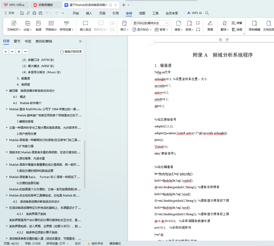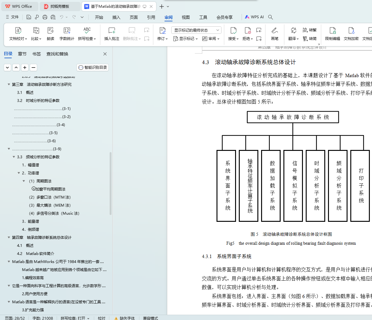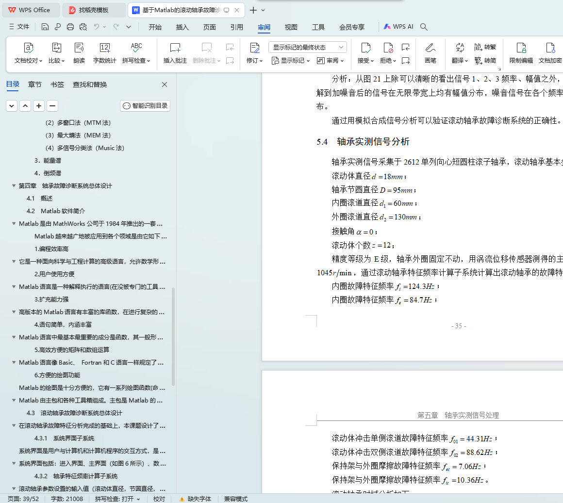 本论文按照预定的要求完成了设计任务,研究了滚动轴承的故障诊断方法,完成了故障诊断系统的设计,通过仿真验证了滚动轴承的故障诊断方法。