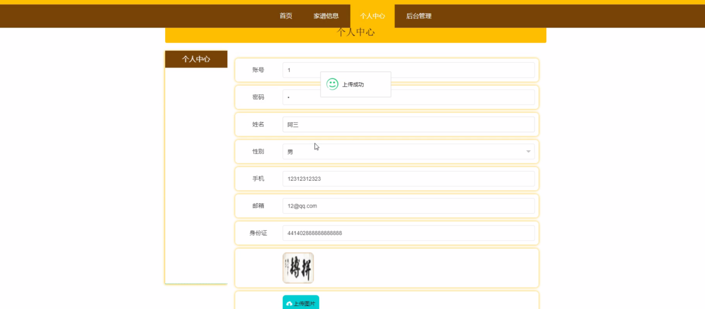 家谱管理系统的开发过程中,采用B / S架构,主要使用Java技术进行开发,中间件服务器是Tomcat服务器,使用Mysql数据库和Eclipse开发环境。该家谱管理系统包括用户、编写人和管理员。其主要功能包括管理员:首页、个人中心、用户管理、编写人管理、家谱信息管理、家谱成员管理、系统管理;编写人:首页、个人中心、家谱信息管理、家谱成员管理;用户:首页、个人中心、家谱信息管理、家谱成员管理;前台首页;首页、家谱信息、个人中心、后台管理等功能。