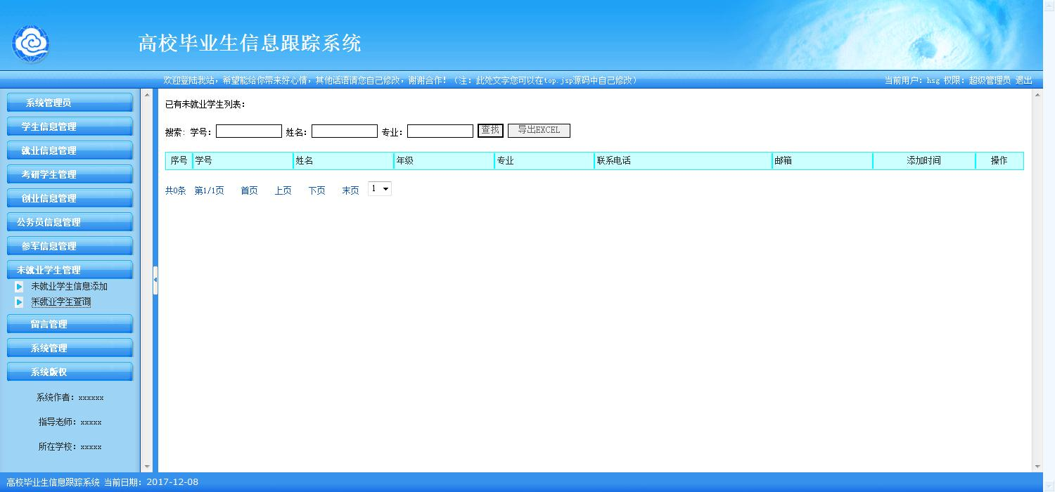 关键字:高校毕业生信息管理系统,jsp编程语言,sqlserver数据库