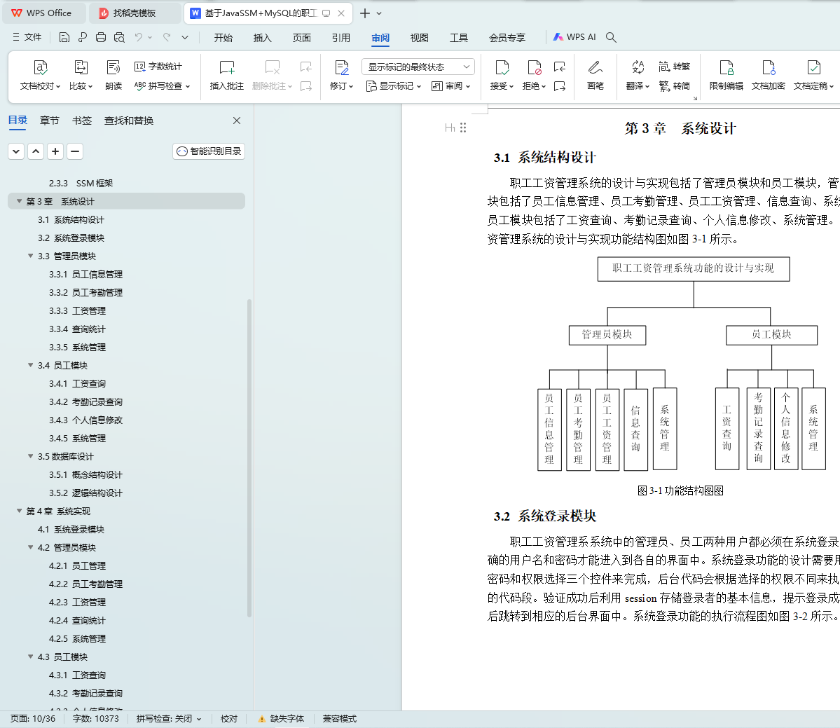 职工工资管理系统的设计与实现包括了管理员模块和员工模块。管理员模块中可以完成员工基本信息的添加和管理,对员工每天的迟到、早退、旷工日常考勤进行记录,对员工的加班进行记录,包括加班的日期和时长,对员工的请假进行记录,包括请假的开始日期和请假天数,可以统计出员工每个月迟到、早退、旷工的次数,以及加班时长和请假天数,最后通过日常考勤、请假、加班和基本工资计算出员工每个月的社保个人扣款和实发工资,可以对员工的工资明细进行查询。员工模块中可以完成对个人工资和个人考勤记录的查询,以及个人基本信息和登录密码的修改。职工工资管理系统的设计与实现是采用的SSM框架来完成的,后台开发语言是Java,数据库是MySQL