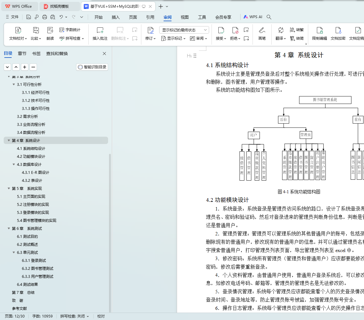 以往的图书馆管理事务处理主要使用的是传统的人工管理方式,这种管理方式存在着管理效率低、操作流程繁琐、保密性差等缺点,长期的人工管理模式会产生大量的文本借书与文本数据,这对事务的查询、更新以及维护带来不少困难。随着互联网时代的到来,现如今网络的覆盖率已近非常的全面,现在人们对网络的需求也越来越高,为了减轻管理人员的工作负担,提高管理人员的工作效率,因此通过网络平台创建一个便捷高效的图书馆管理来优化管理业务。通过本网站,用户可以在线查看相关信息可以说图书馆管理是偏向实际应用的网站。本文介绍了图书馆管理设计方案,该网站采用目前VUE中最流行的SSM框架和Eclipse编辑器、MySQL数据库设计并实现的。网站功能包含系统用户管理、图书管理、用户管理、借书管理、续借管理、违章缴款管理等模块。概述了整个系统的设计框架,介绍了系统软件开发编译环境的搭建,阐述了各模块的功能及程序调用关系设计过程。
